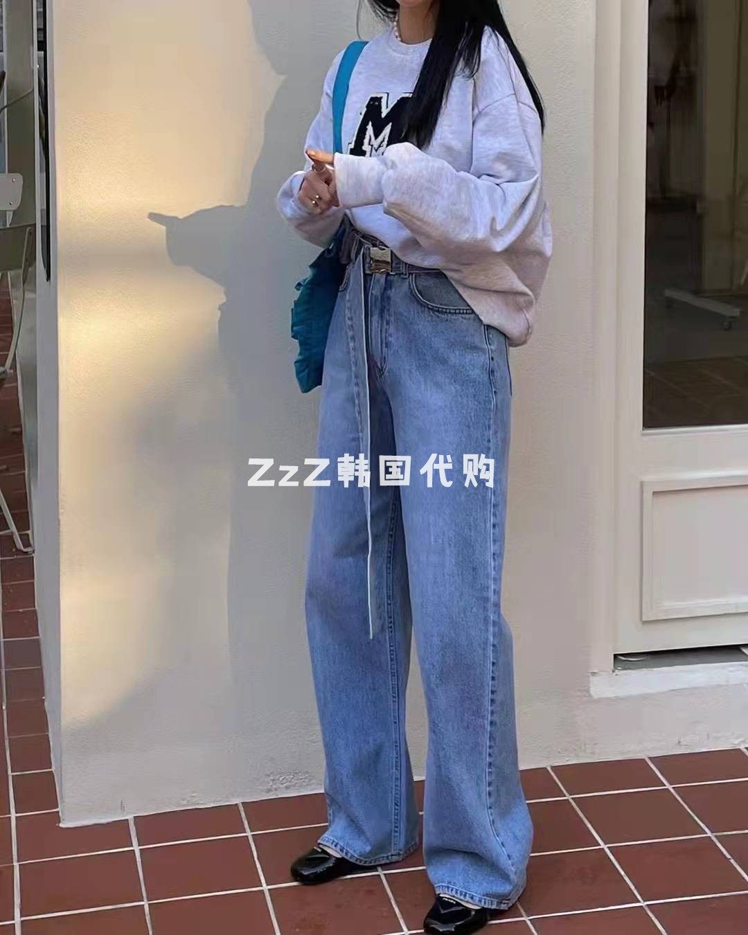 (two) ZzZ Korea Dongdaemun Spring section High waist 100 lap straight drum towering jeans 1829