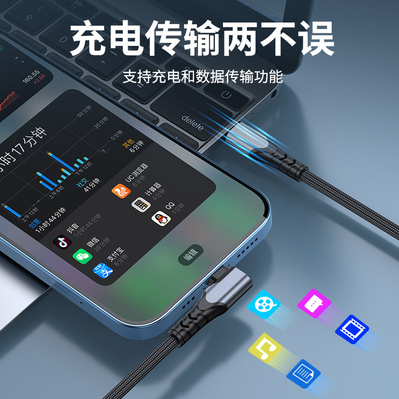 type c single elbow turning lightning on-board carplay data line applies Tesla model Benz Audiride Machine Connected 25w Apple iPhone