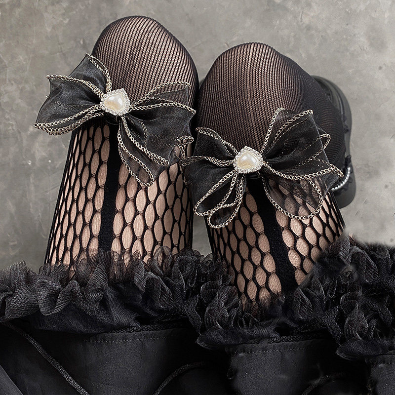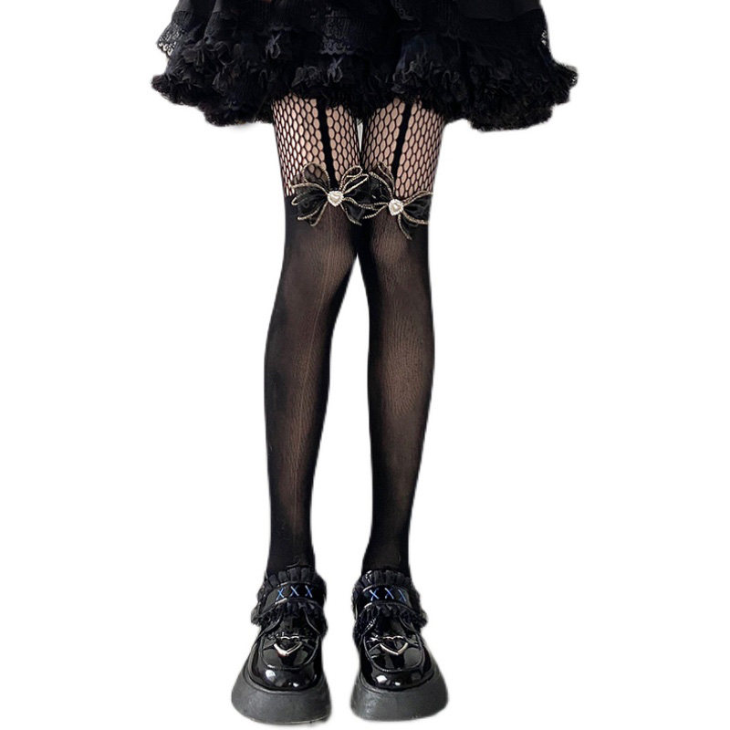 Nighttime teaching room Harness Silk Socks Female Splicing Fishing Nets Socks Black Bow Tie Black Lian Pants Socks Loretta Black Silk-Taobao