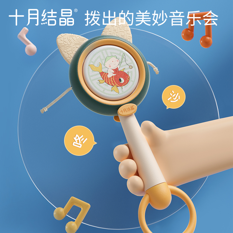 October Crystallized the Waves Drum Newborn Baby Shake the bell Rattle Bell Puzzle Children Toys 0-1-year-old baby can nibble