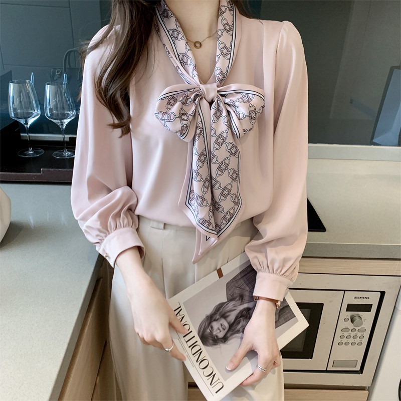 Career Drifting With OL Snowspun Long Sleeve Shirt Woman 2022 Spring and Autumn New Korean version Inner Lap Blouse Bubble Sleeves Shirt