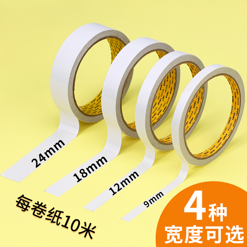 Double-sided tissue paper tape 9mm*10y (32 rolls discounted) Double-sided tissue paper tape 12mm*10y (24 rolls discounted) Double-sided tissue paper tape 18mm*10y (
