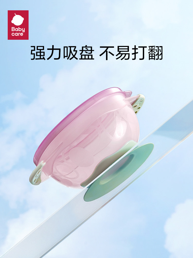 babycare baby food supplement bowl suction cup baby learning to eat children's tableware set anti-fall anti-scalding three-piece set