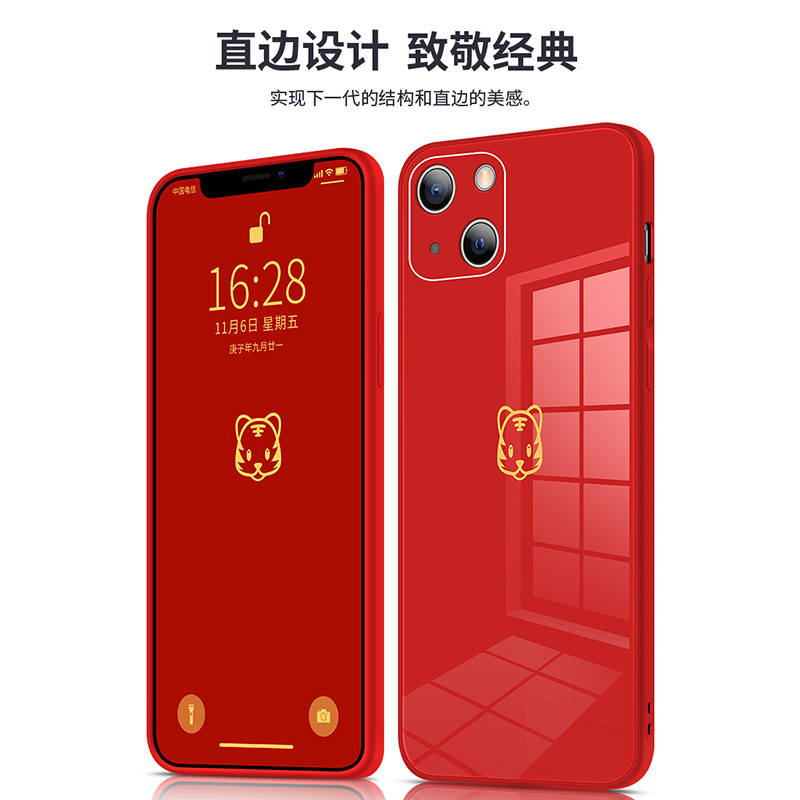 Apple 13 Mobile Phone Protection Shell New Liquid Glass Pink iphone13promax Advanced Sensation Personality Creative Tiger Year Female Tidal Card Internet Red Couple 12 Shots Full Bag Fall Man 11 suitable
