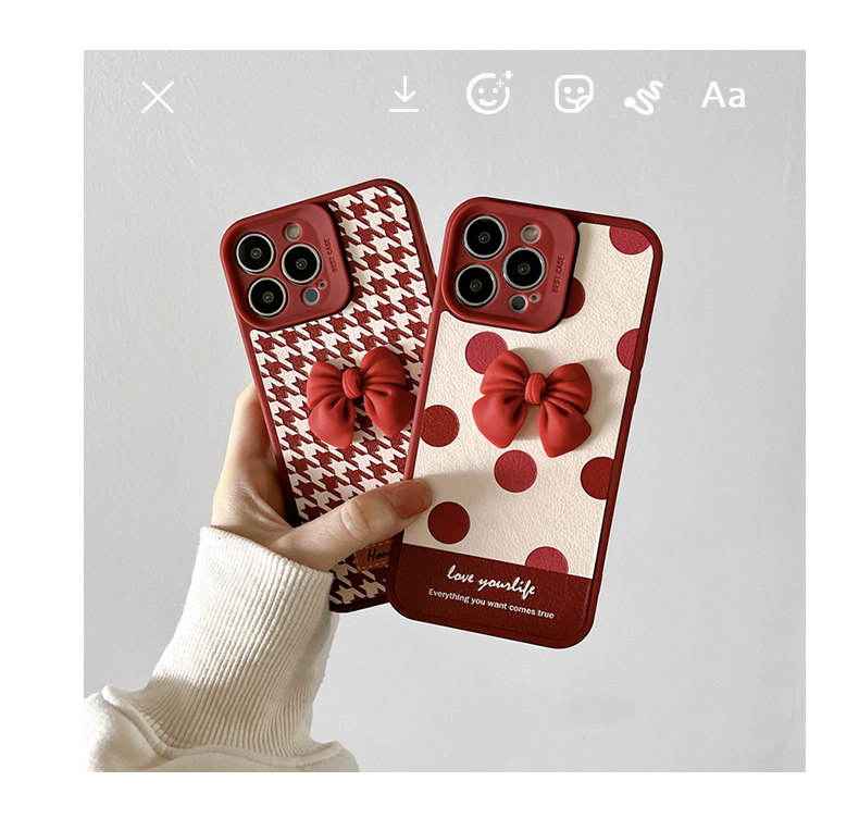 New Year's Red Wave Point Butterfly Bow is applicable to Apple 13 mobile phone protective shell iPhone 12 protective set 13 Promax all package anti-fall 11 sex Japanese Korean xs max tide women