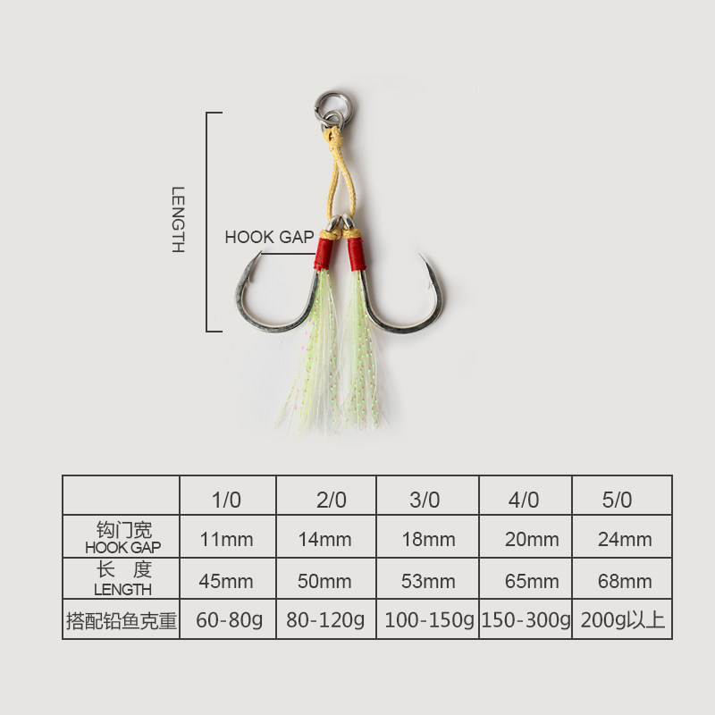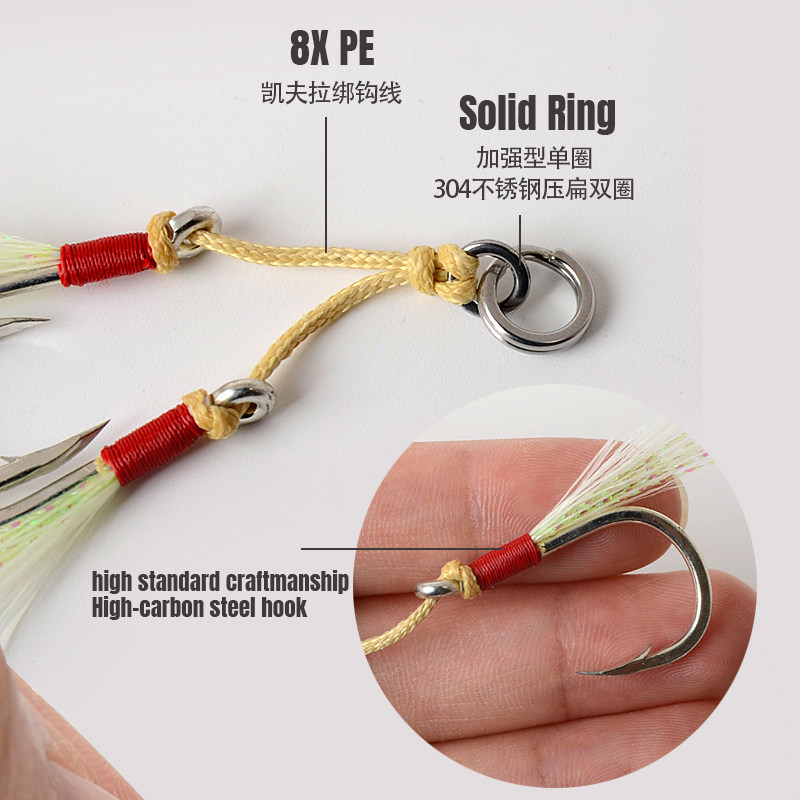 Sea fishing slow rocking iron plate double hook tied hook imported high carbon steel fast pumping luminous Luya hook