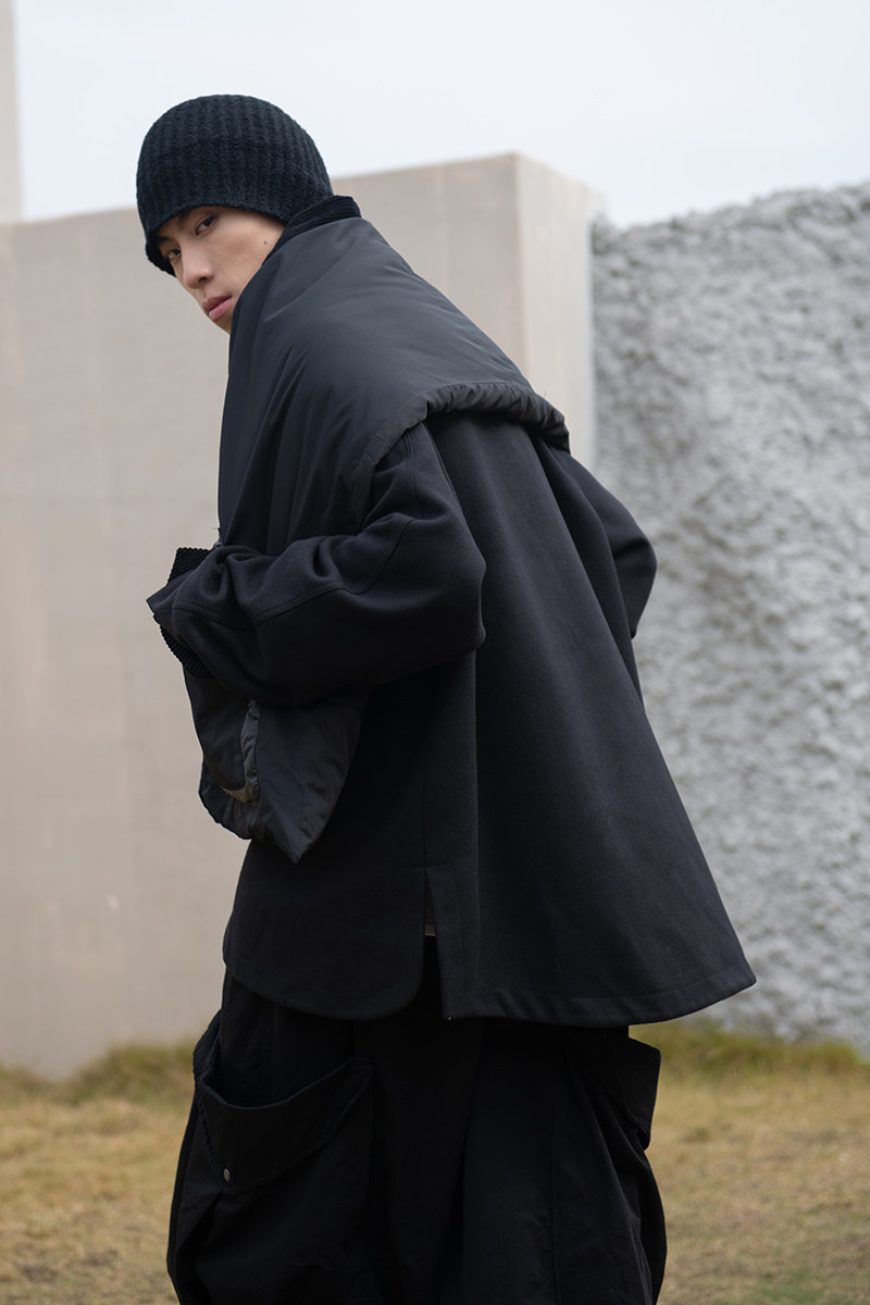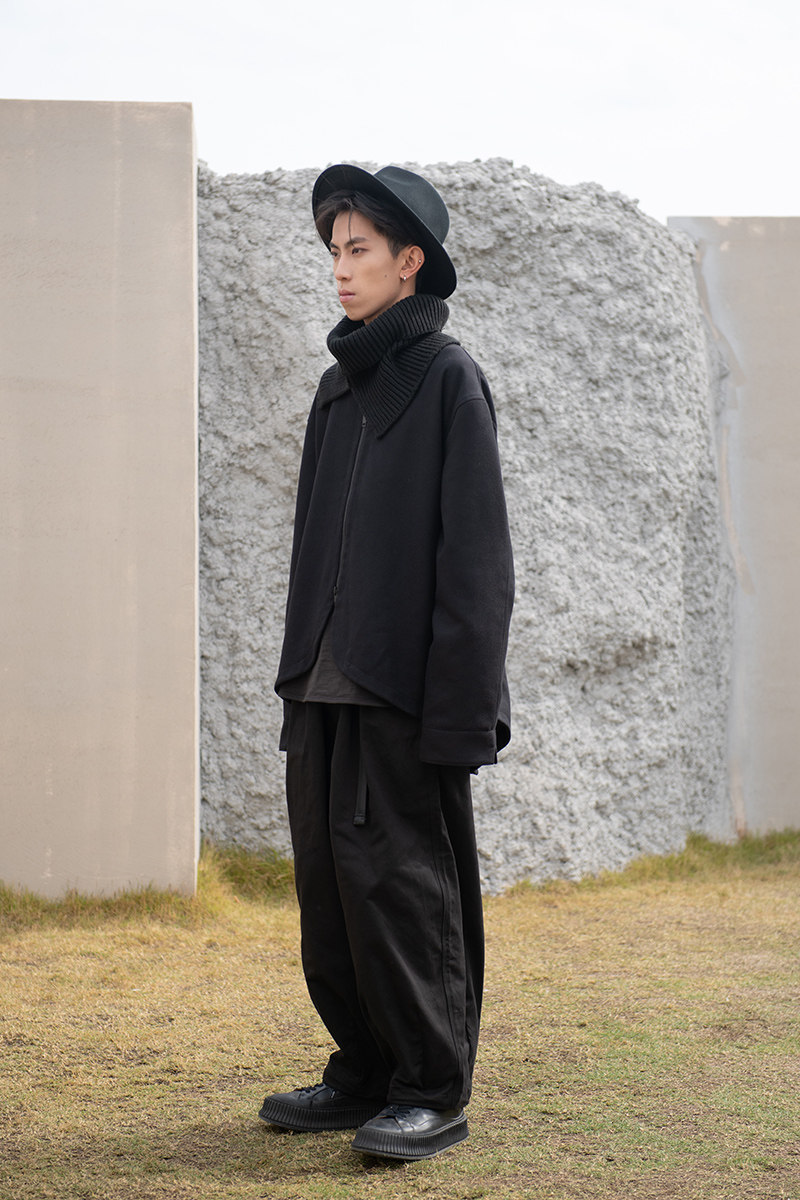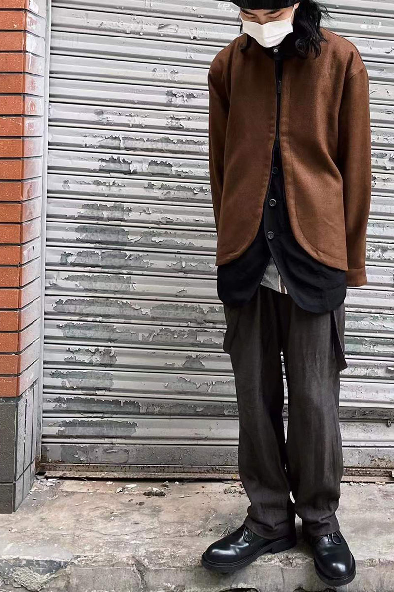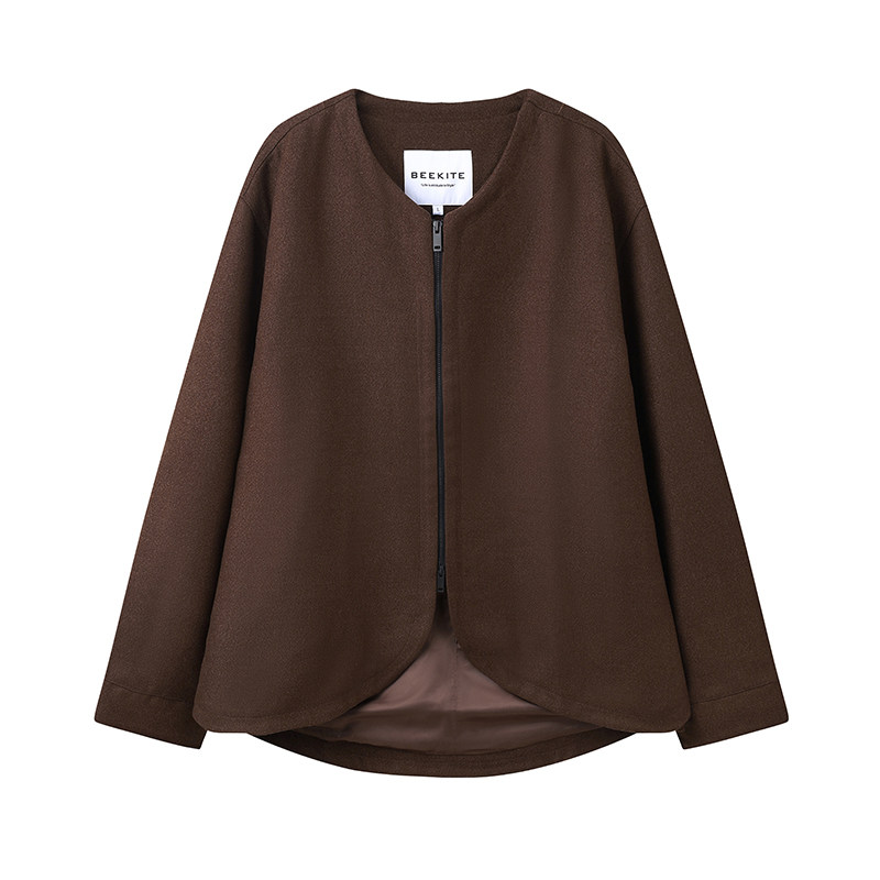 BEEKITE silhouette brushed zipper cardigan collarless loose jacket coat rounded hem shape heavy retro