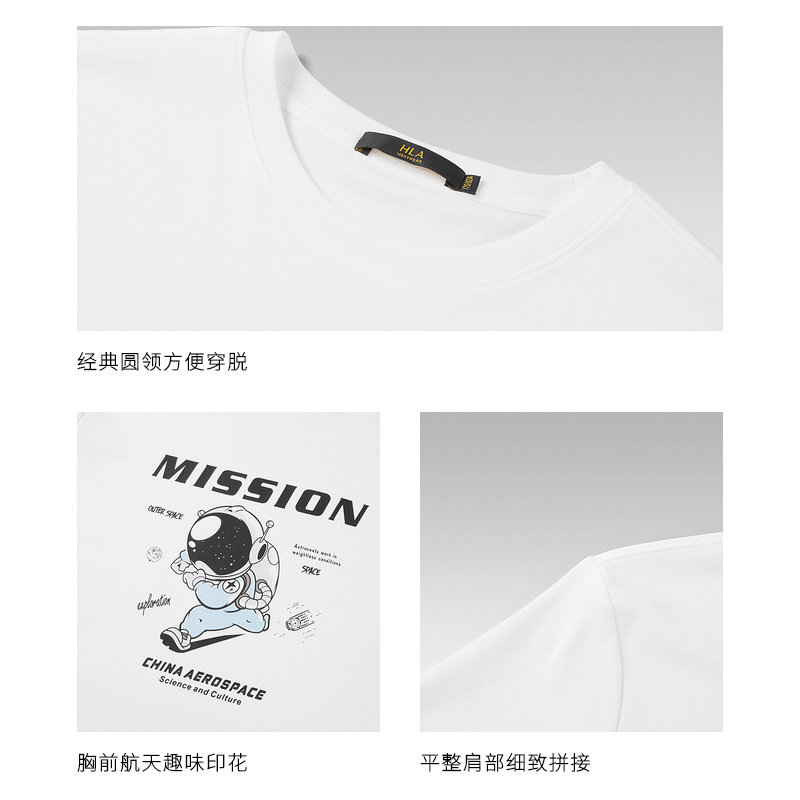 HLA Hailan House Space Series Short Sleeve T-shirt 22 Summer New Shu soft cotton round collar white pure cotton blouse male