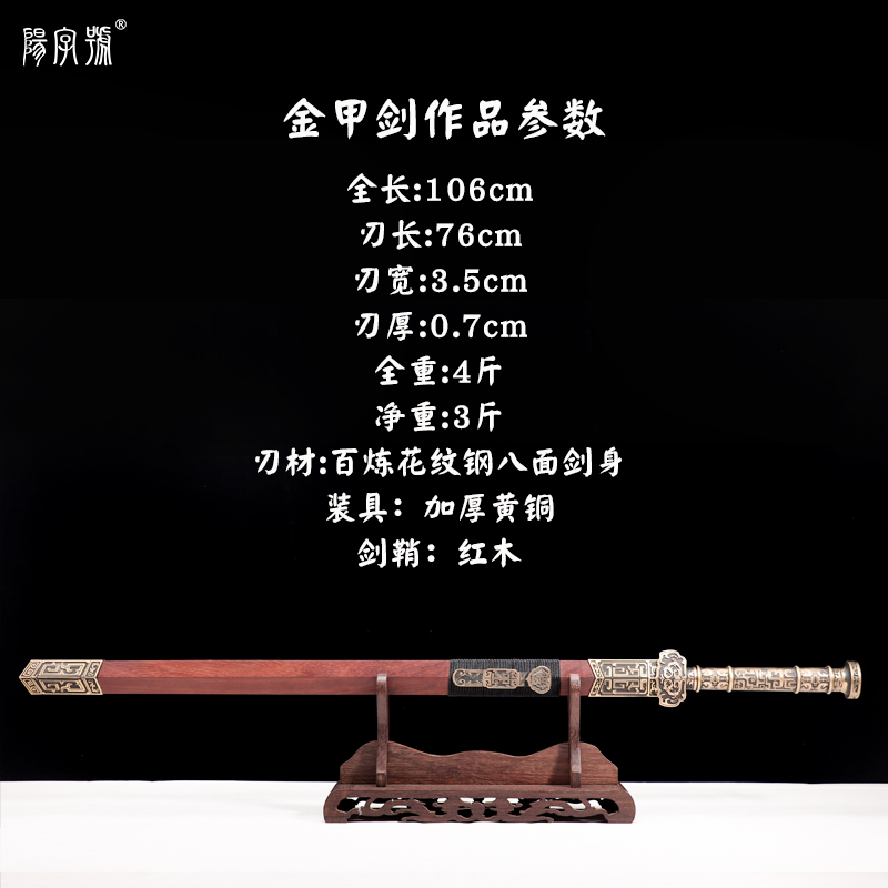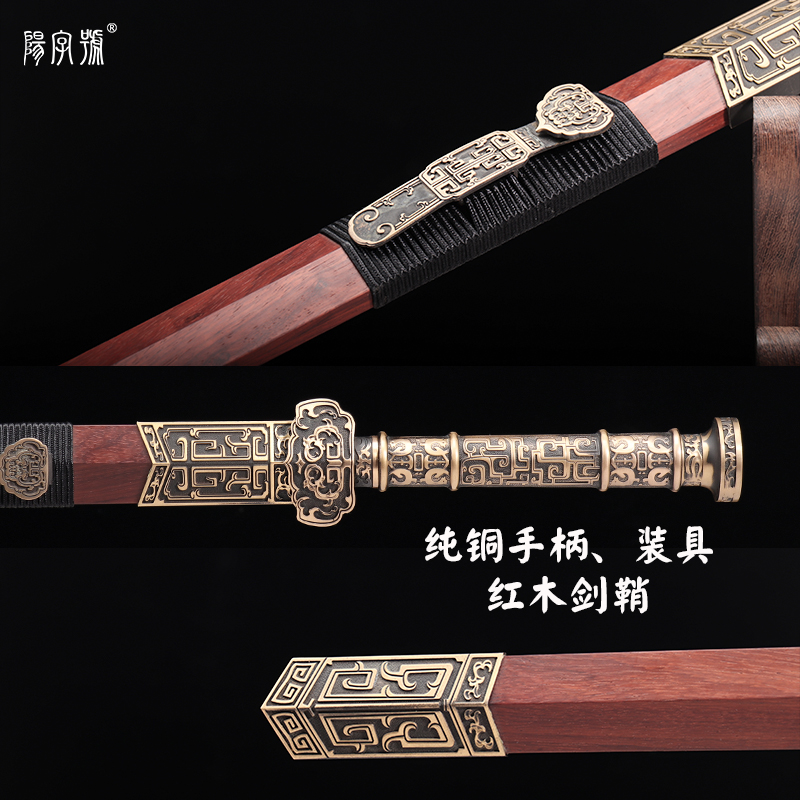 Golden sword pure copper handle Longquan character sword eight-sided sword cold weapon without blade