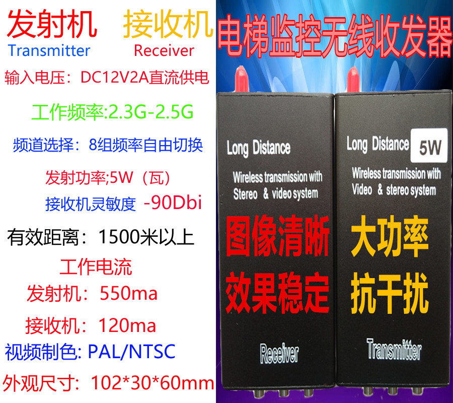 Peak elevator wireless monitoring transceiver 5W home 3W analog camera video outdoor bridge transmitter