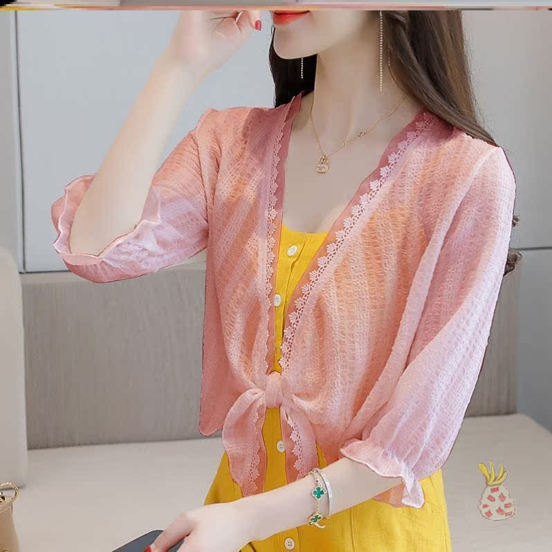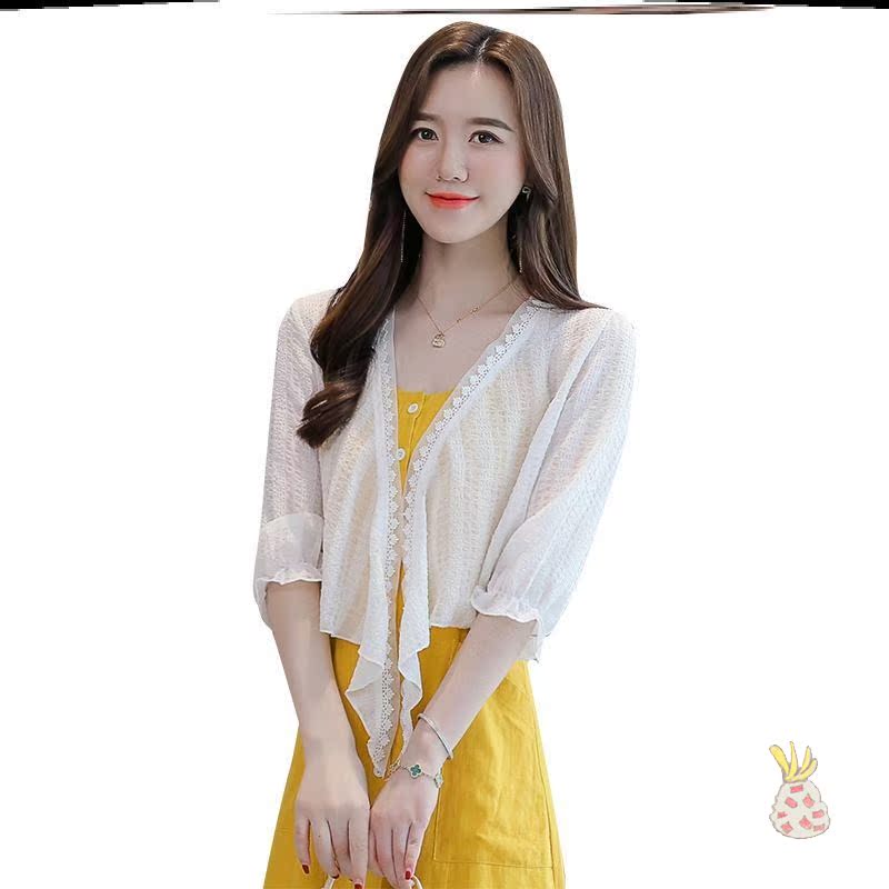 Small white outer cloak with a tie dress in summer sun-proof sweater