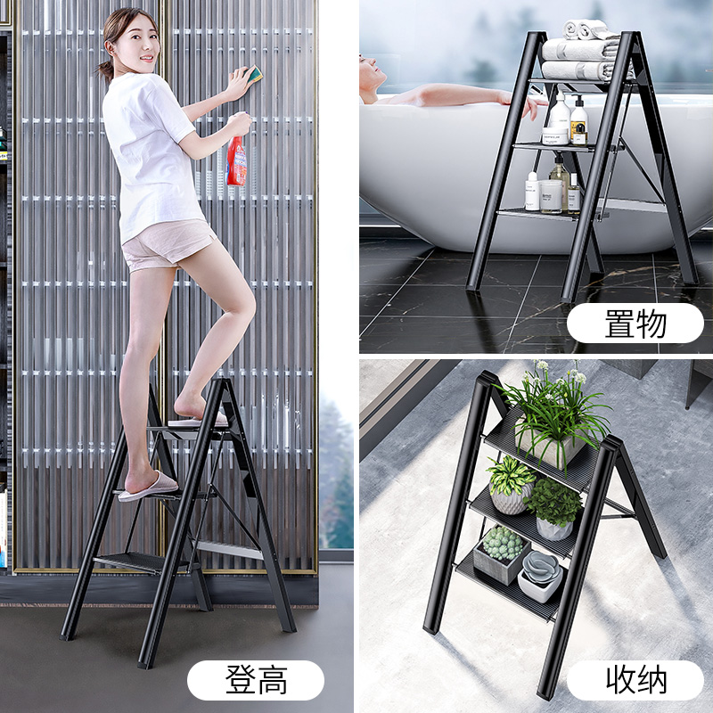 (2022 high fit thickened section) frosted black three-step multifunctional D-5112 (2022 high fit thickened section) frosted black four-step ladder multifunctional D-5113 (2