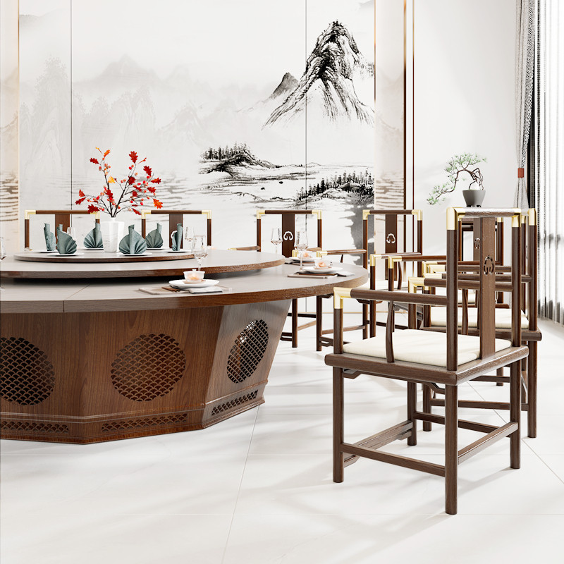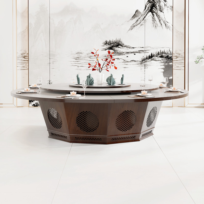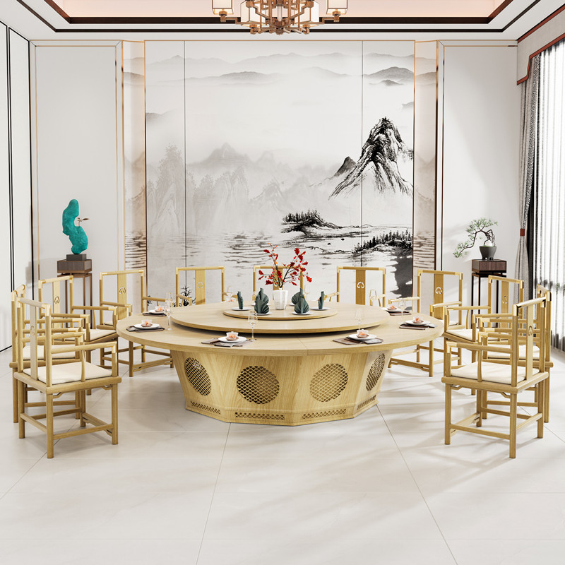 New Chinese style hotel table big round table 15 people 20 people will bag the box solid wood electric rotary pan hot pot table custom