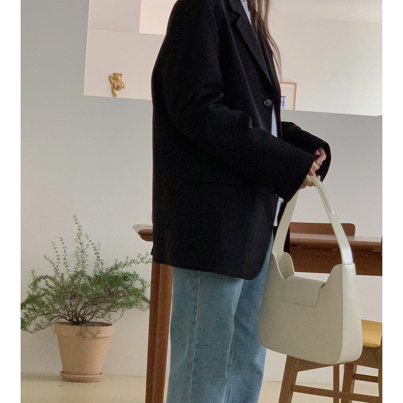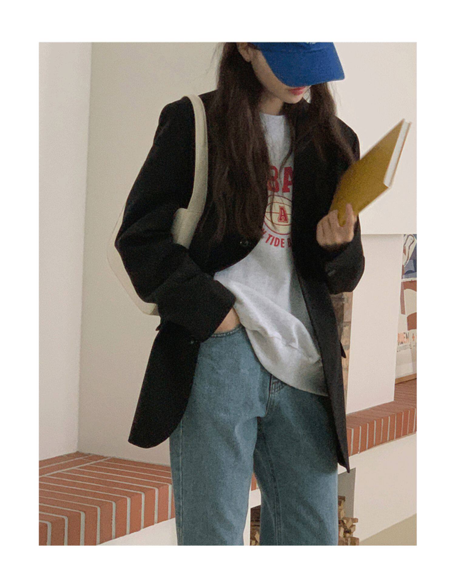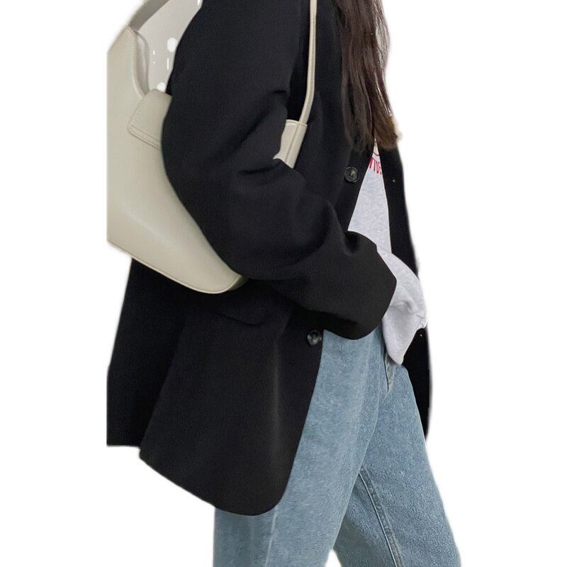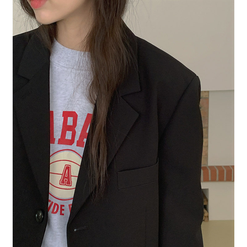 2022 Spring new High Sensation Fried Street Little Western Suit Jacket Korean version loose Thin Black Suit Jacket Woman