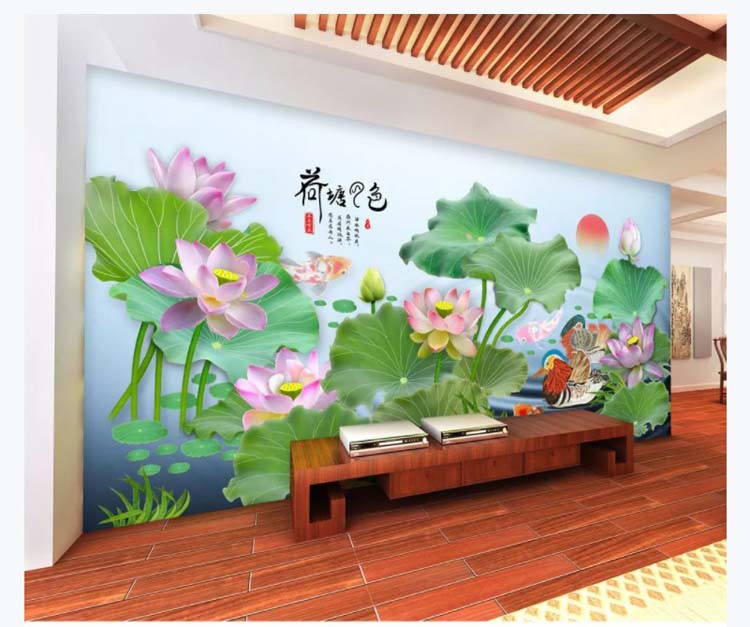 Atmospheric lotus bamboo fiber TV sofa background integrated wall panel living room bedroom ink painting quick mount gusset board