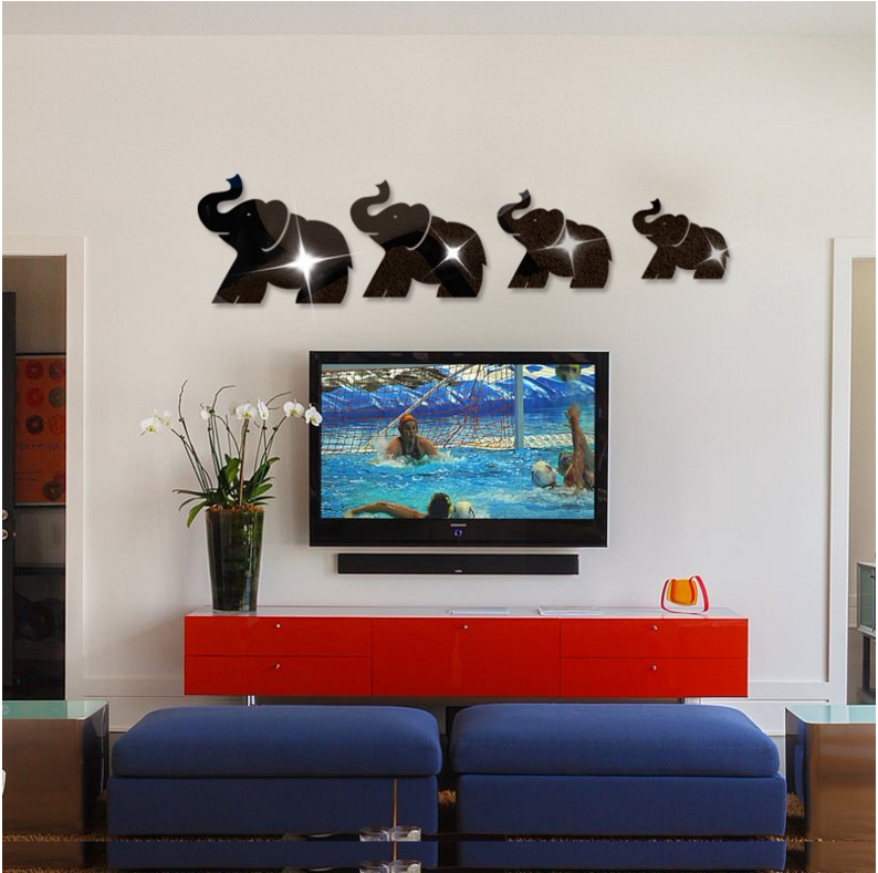 Bedroom children's room bedside background wall stickers living room sofa cartoon stickers 3D acrylic body elephant mirror wall stickers