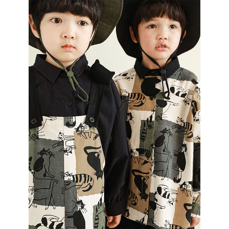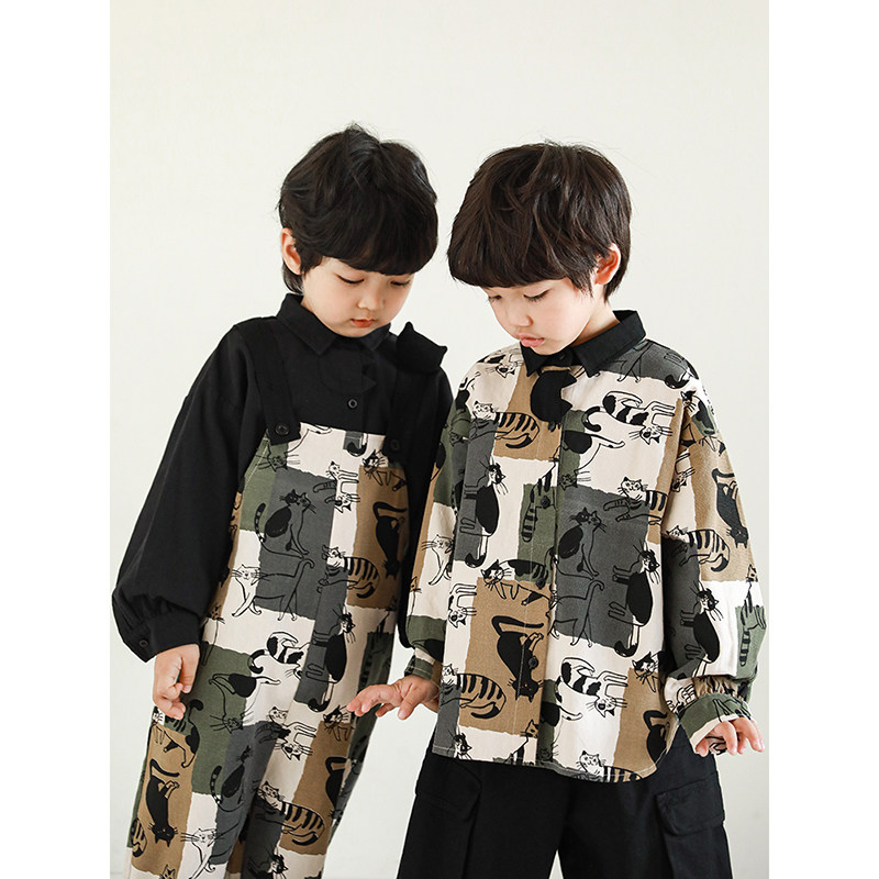 Young Yo-yo Boy Full Print Graffiti Shirt 2022 Spring new quite sphincter Breathable Shirt Children Cartoon Printed Blouse
