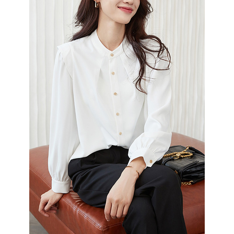 Mularsa Method Temperament White Long Sleeve Shirt Woman 2022 Spring new lotus sleeves Career positive dress shirt