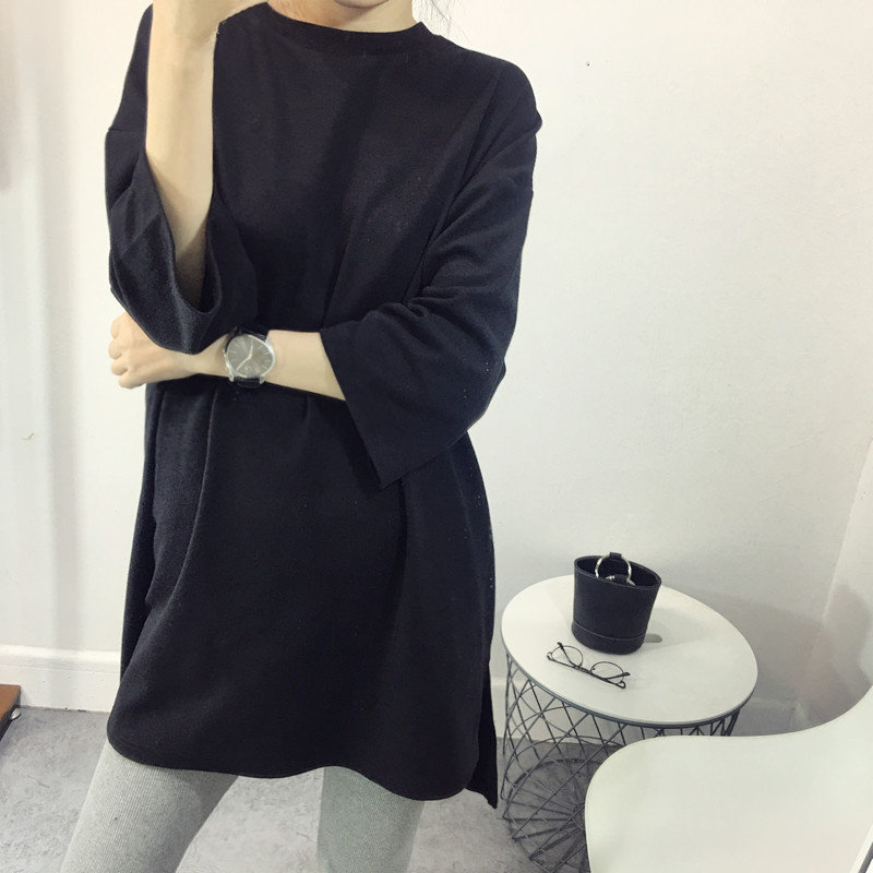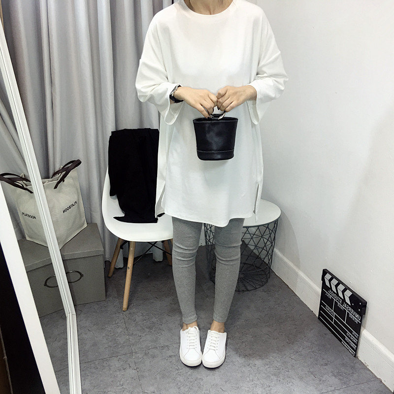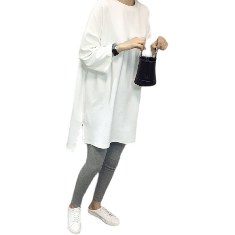 Gestational Woman Dress White T-shirt Woman Spring Autumn Season Loose 70% sleeves Long version pure cotton Nets open fork blouses undershirt