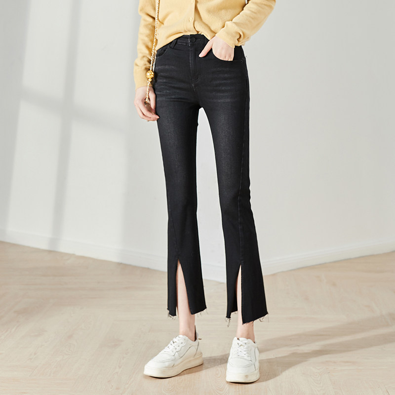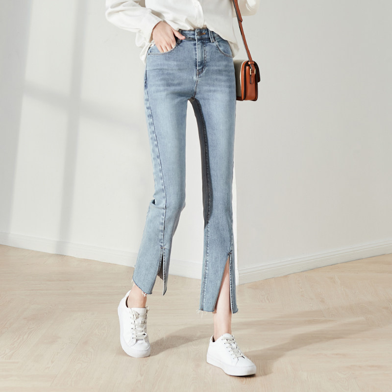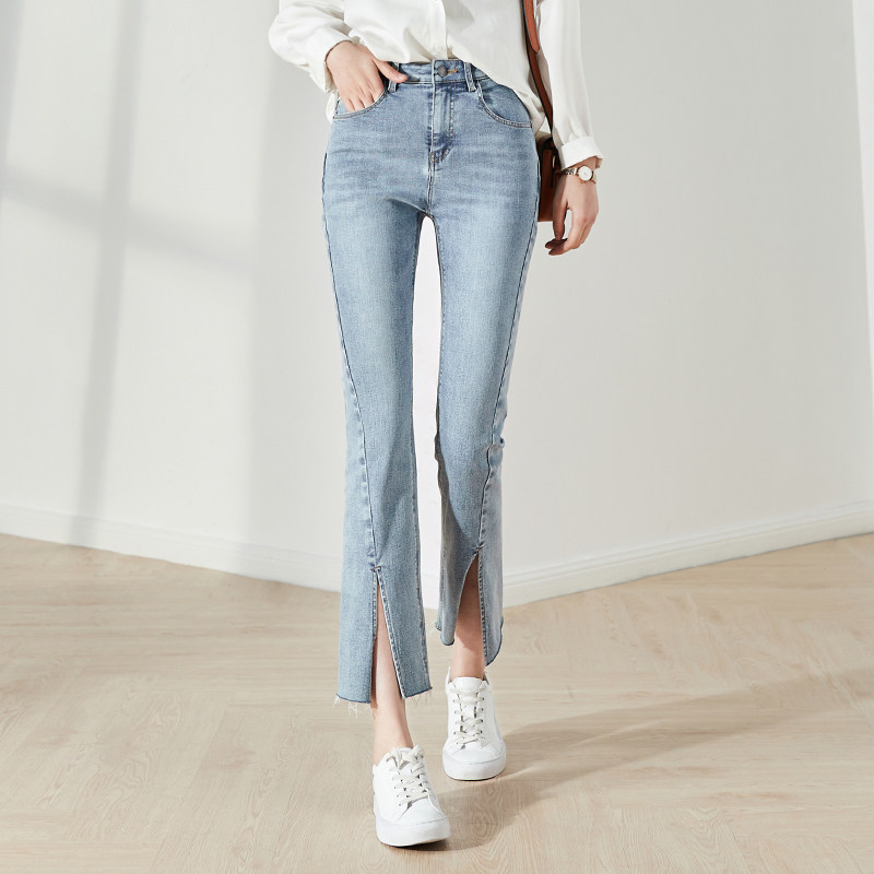 Sophires 2022 spring new high waist loose slim front open fork fashion retro 90% microlao jeans woman