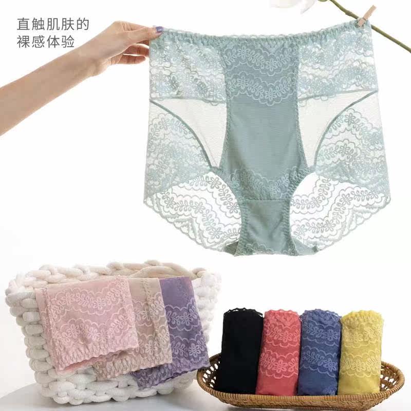Underpants Women's style gattening up overweight Sexy Lace Transparent Hollowed-out web yarn High waist collection Belly Triangle Underpants Summer Fat Mm