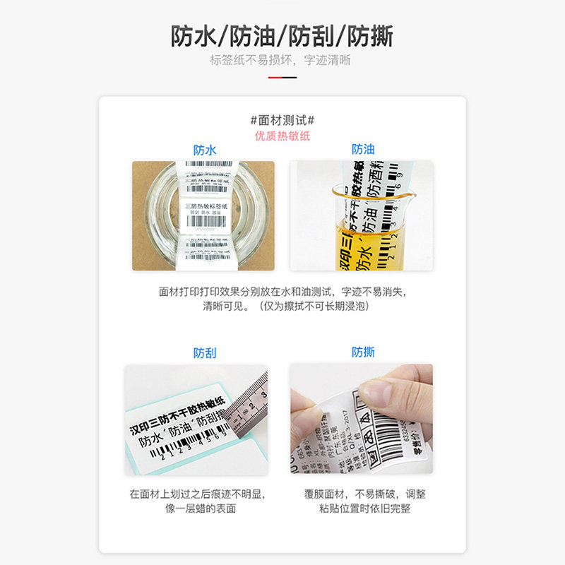 Hanprint T260 four anti-heat sensitive label paper small roll core portable mark machine printing paper commodity price food adhesive barcode sticker clothing hanger 3 anti-synthetic paper waterproof tear-proof-Taobao