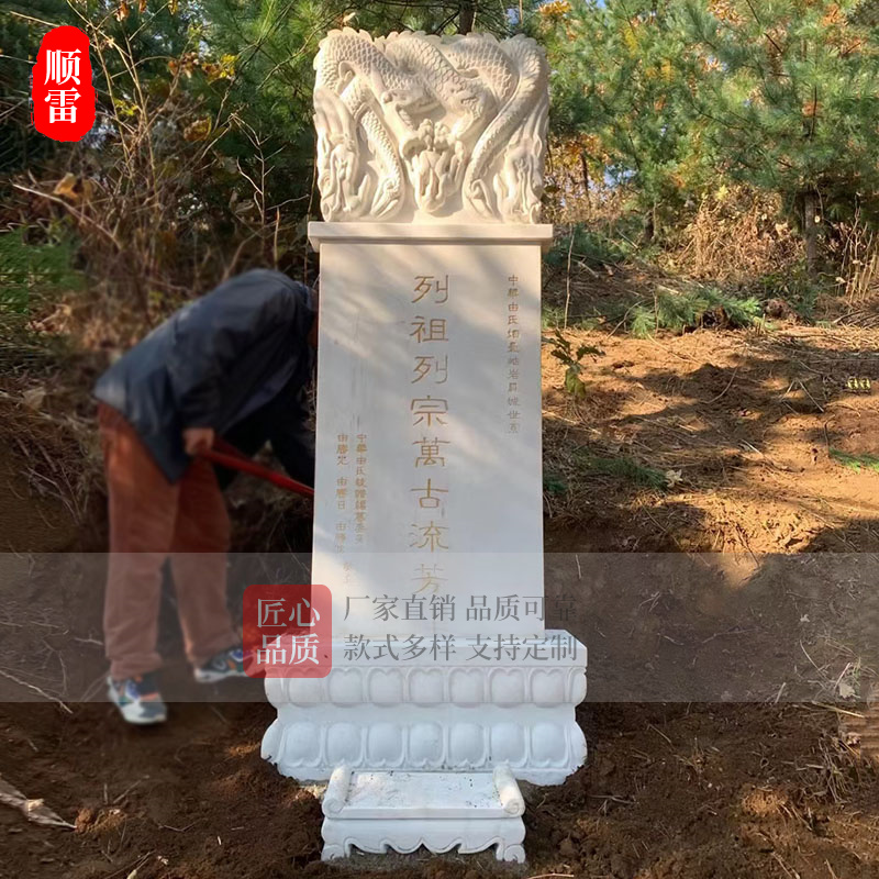 Stone carving tombstone Han white jade dragon pinewood marble earth burial nameplate Cornerstone Granite Graveyard Stone Monument