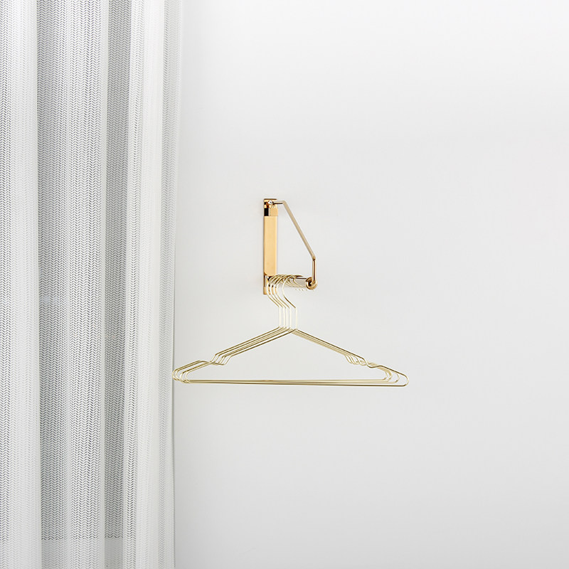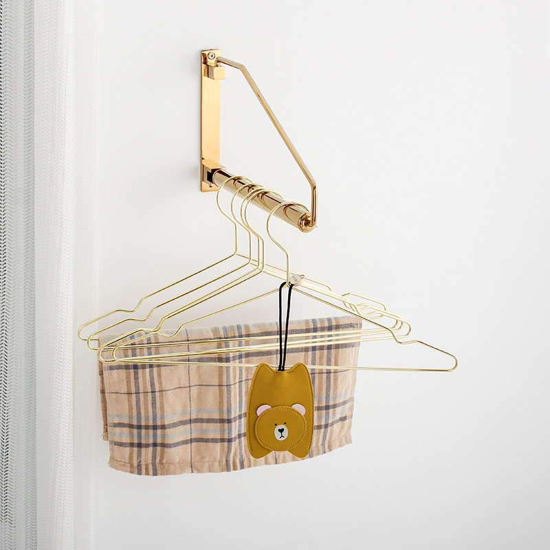 Nordic simple gold hanger brass light luxury rotating folding rose gold drying clothes towel wall hanger