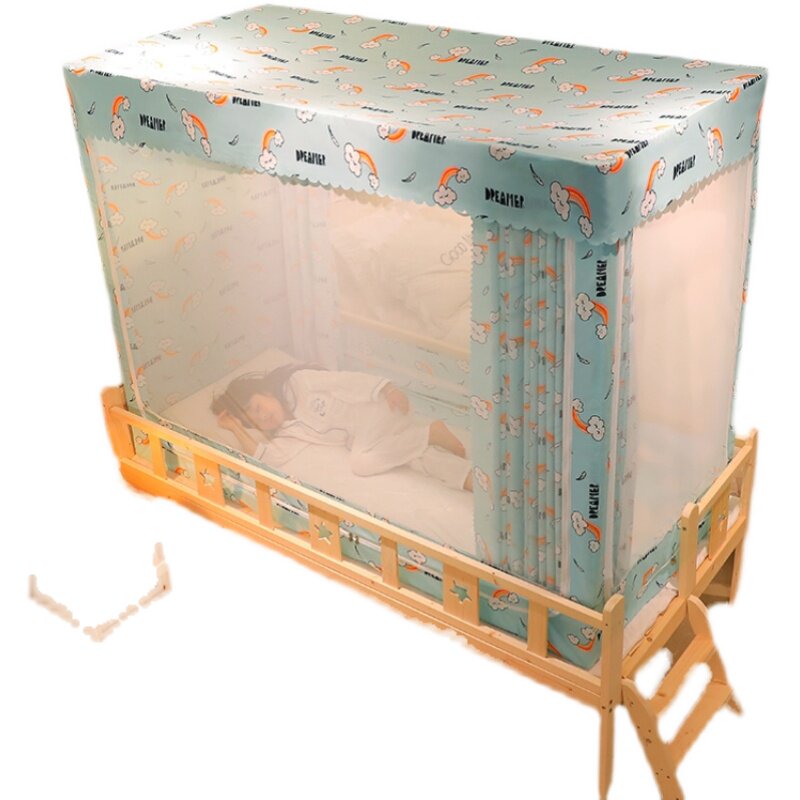 New Pull Chain Children's Bed Shading Curtain Sitting Bed Type Mosquito Net Three Doors Baby Anti-Fall Summer Bedroom Home Thickening