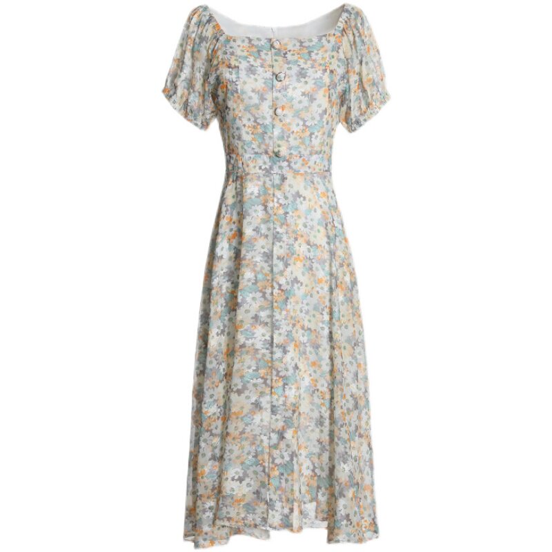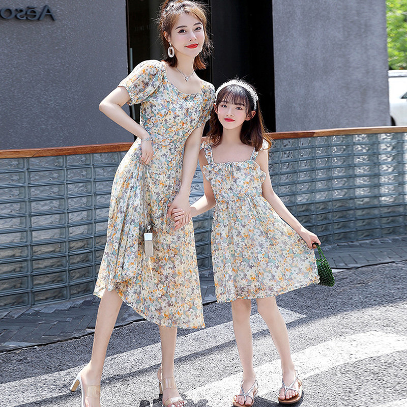 Seaside vacation parent-child wear beach mother and daughter wear sweet floral dress Western style girls thin chiffon suspender skirt