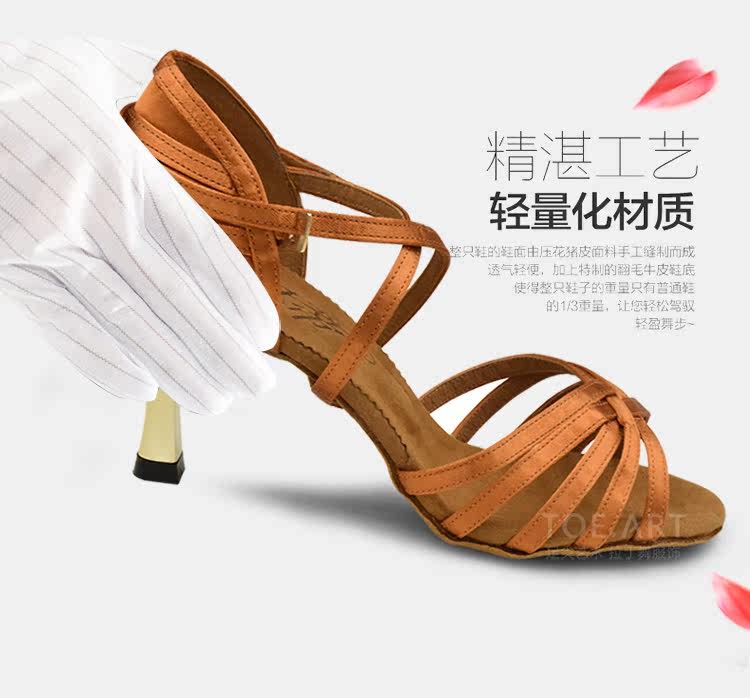 Break code clear cabin Betty 2324 Latin dance shoes Inp high 7 5cm gold heel national standard dance shoes women satin dance shoes