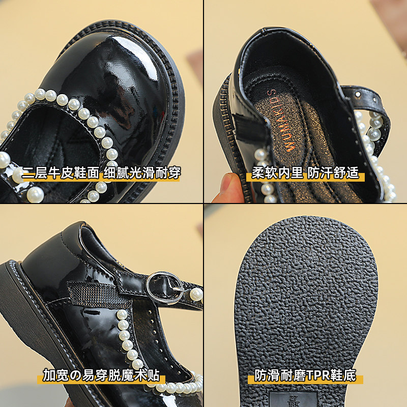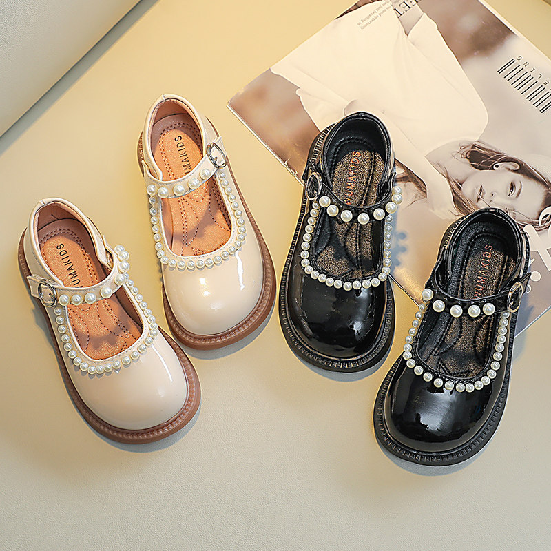 Korean Boy Shoes 2022 Spring Autumn New CUHK Child Light Extravaganza Mary Treasures Lacquered Leather Single Shoes Children Nail Beads Leather Shoes
