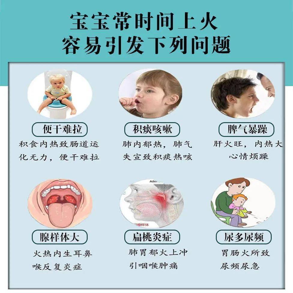 The baby's fire-clearing artifact has internal heat, anger, eye excrement, excessive breath, dry stool, lung heat, phlegm, yellow urine, yellow LY
