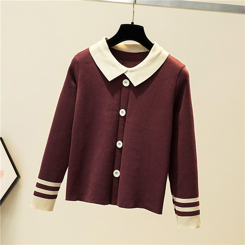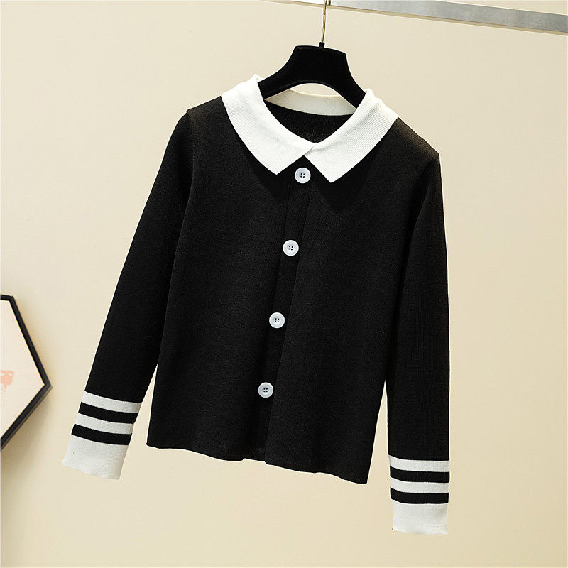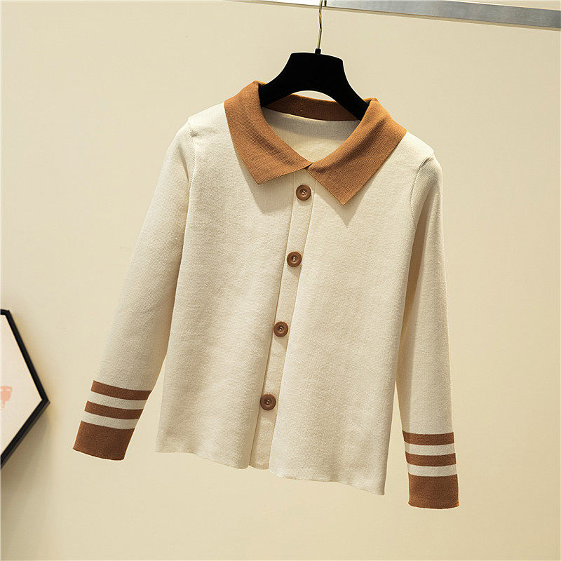 Autumn clothes 2022 The new female Han version of the body is a slim collage with a long sleeve needle weaseled dolly collar sweater short blouses
