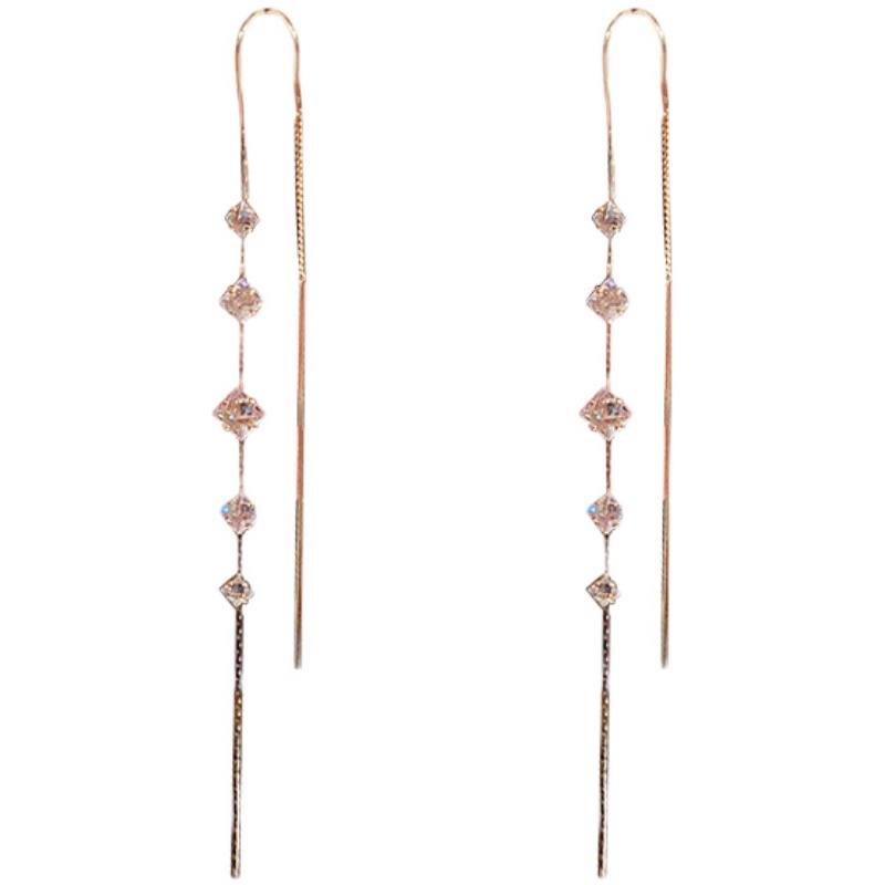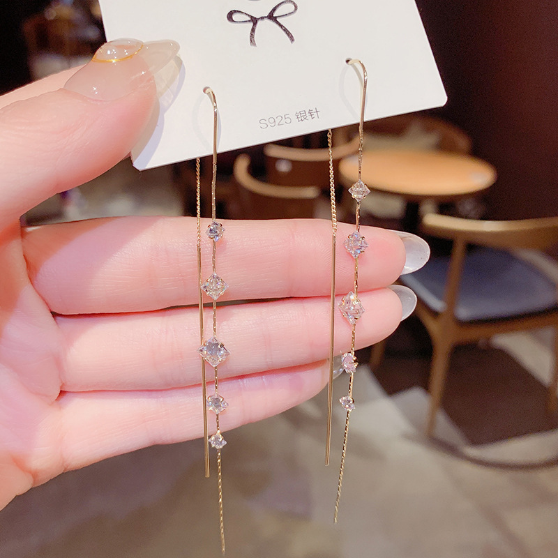 South Korea's new block zircon stonetime Su anti-lose ear necklace net red fashion personality explicit face slim earrings female