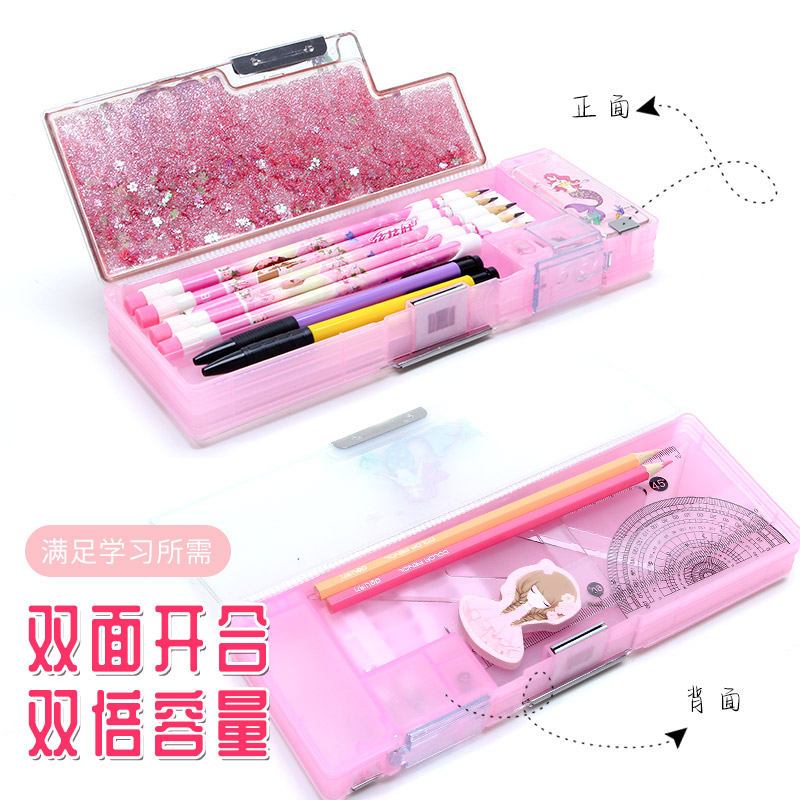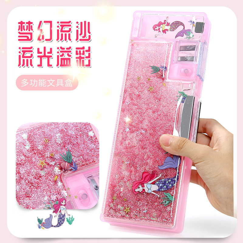 Quicksand Pencil Case Girls Children's Stationery Box Girls Elementary School Cute Kindergarten Girls Grade 123 Girls Large Capacity Mermaid 2022 New Popular Multifunctional Pen Bag Transparent