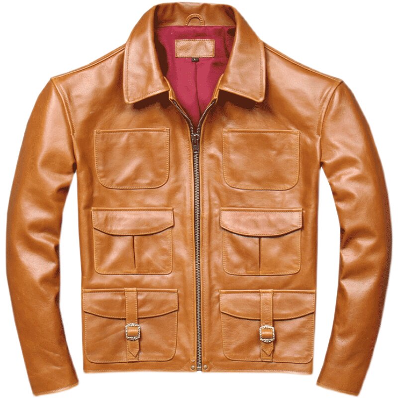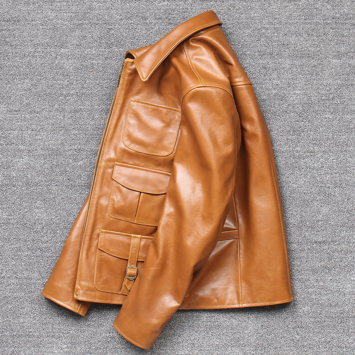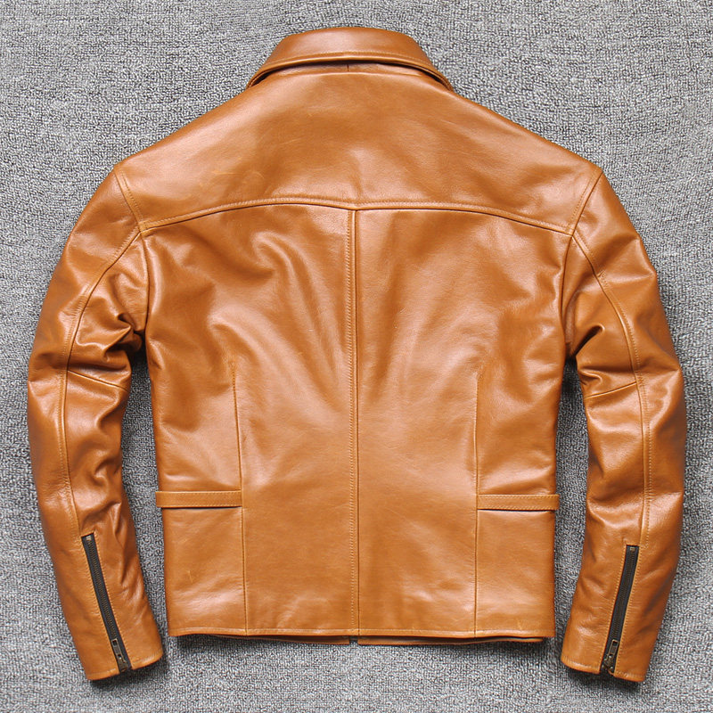 2022 new top layer cowhide leather jacket men's slim leather jacket casual dark brown business men's lapel large size