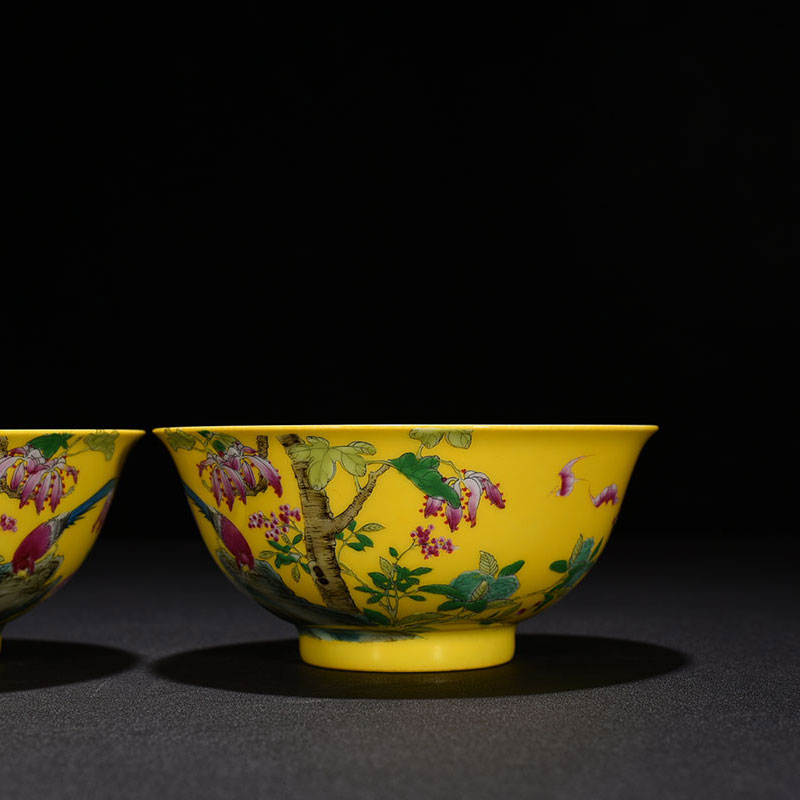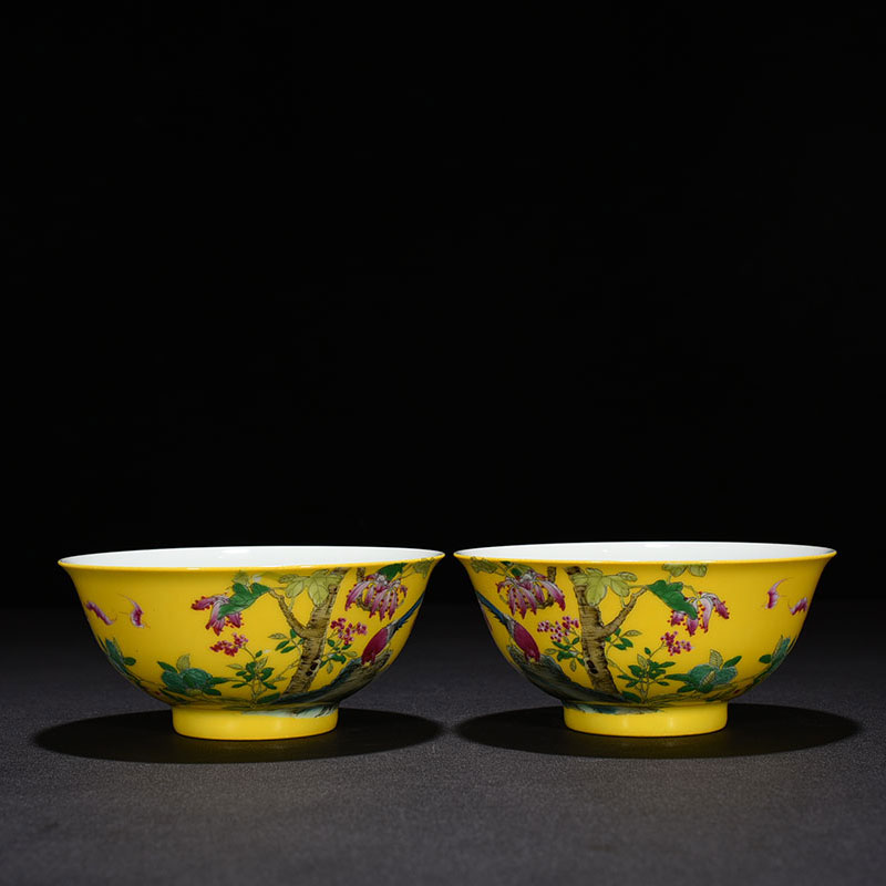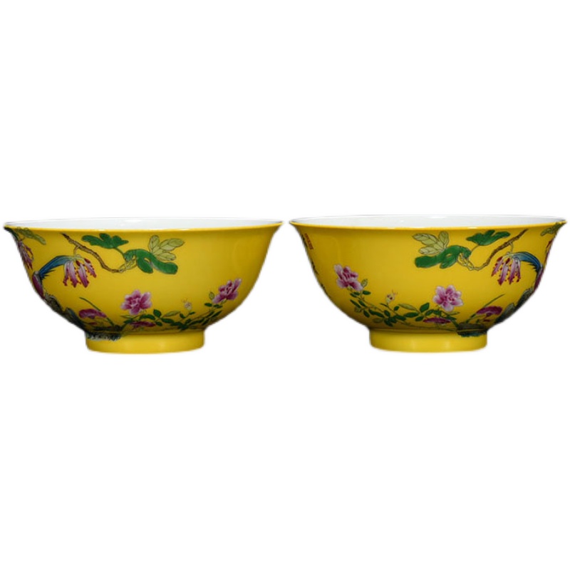 Qingyong is on the way to the yellow land enamel flowers and bird tattooing bowls