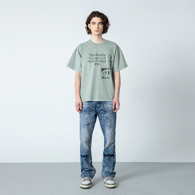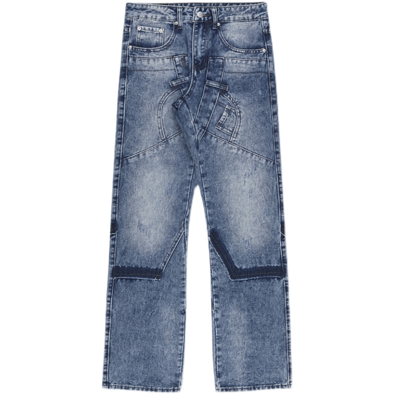 (Ding Zhen same paragraph) new factor tide brand retro old tooling jeans men's straight American street pants