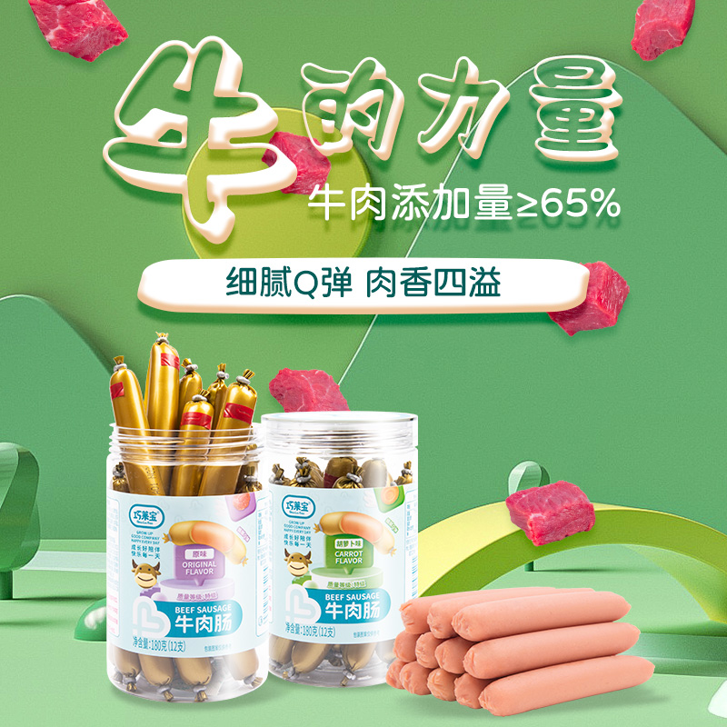 Qiaolaibao Super Beef Sausage 180g Canned Original Carrot Flavor Nutritional Casual Healthy Snacks