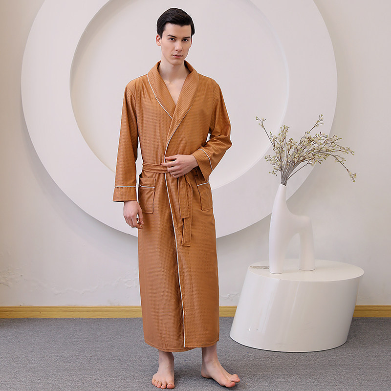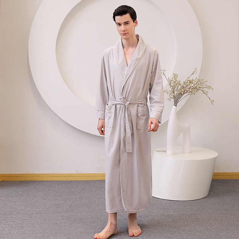 2022 new men's sleeping robes Spring and autumn season Huafg thin sleepwear long sleeves lengthened large size 260 catty bathrobe