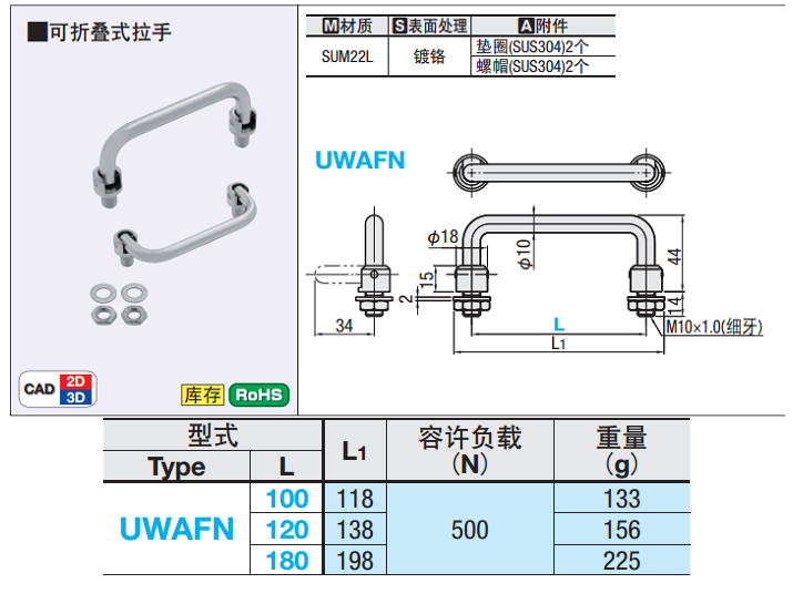 UWAFN100 120180 Control cabinet distribution box handle folding handle industrial equipment handle