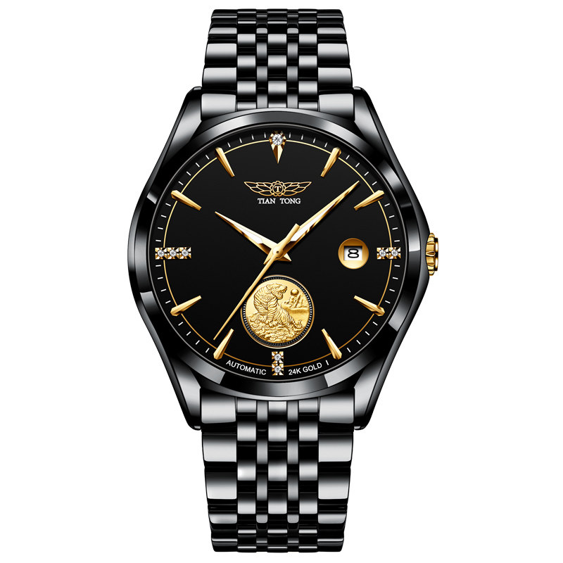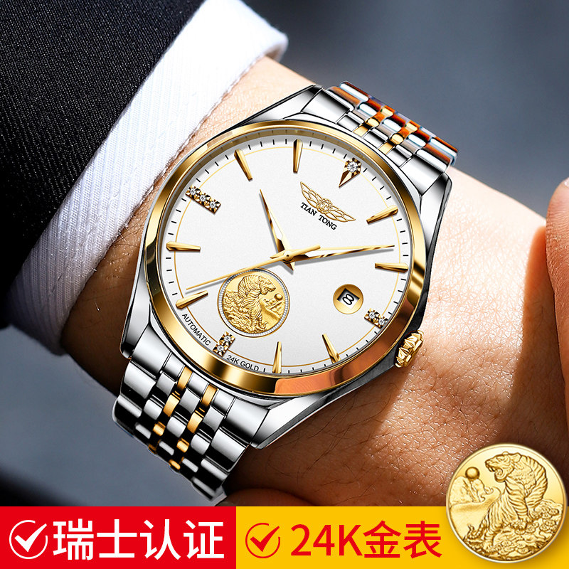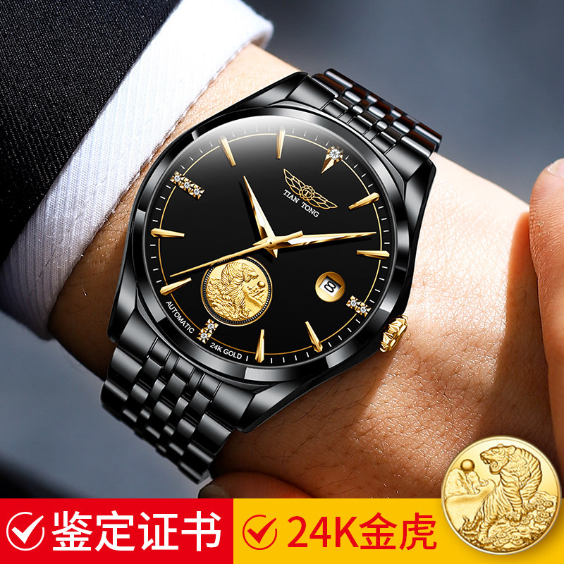 (999 foot gold tiger) Swiss labour men's watches mechanical watches waterproof ultra-thin 24K gold meter men's watches