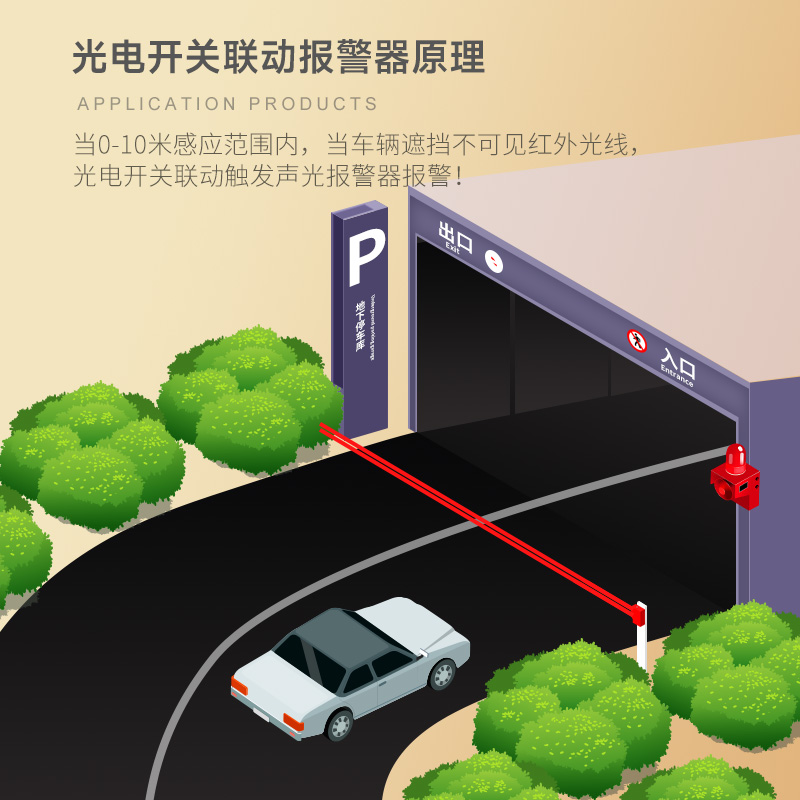 The dedicated sound - light alarm for the garage tunnel warehouse in the parking lot is infrared sensor photoelectric switch with the linkage alarm
