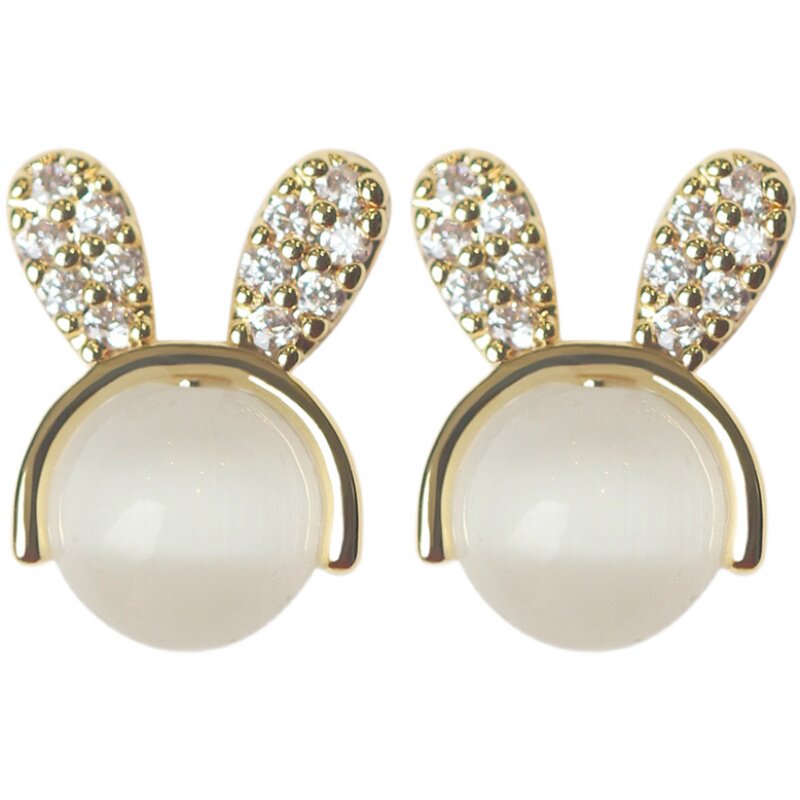 Opal cute rabbit earrings 2022 new trendy temperament fashion ear pin female small and exquisite light luxury earrings