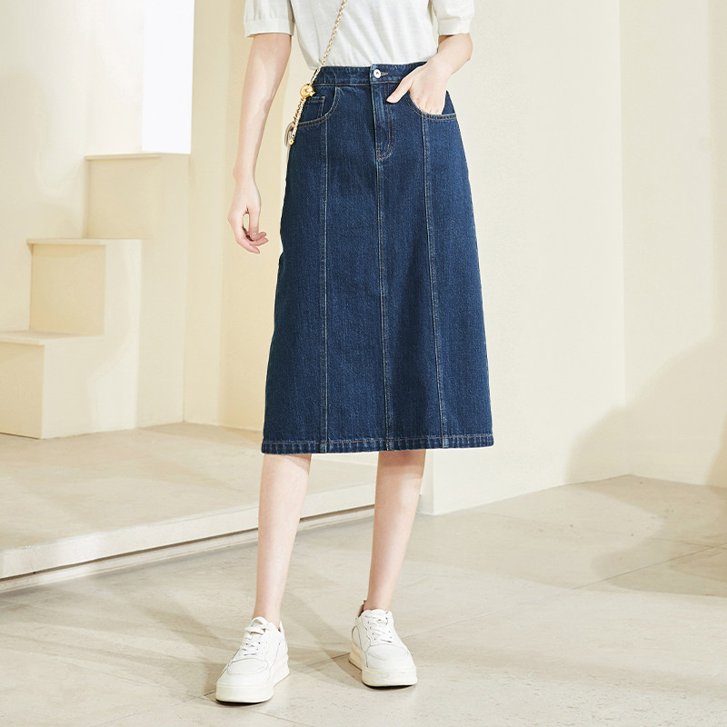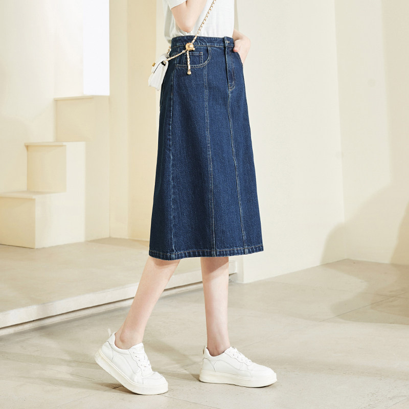 Sophiesel 2022 spring and summer new fashion retro high waist loose slim mid-length a-line denim skirt female