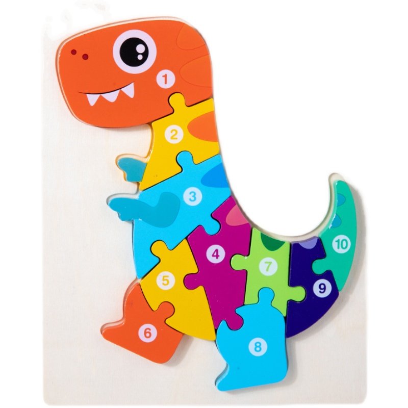 Mon Early Teach 1 Year Old Baby Intelligence Child Puzzle 3d Solid Dinosaur Digital Puzzle 3 to 6-year-old wooden toy