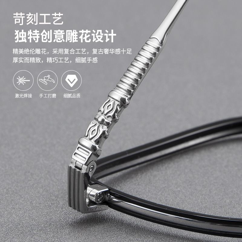 Wooden Ocean Retro Glasses Frame male tide ultra light pure titanium face half frame handmade eye frame artistic woman can be approximately