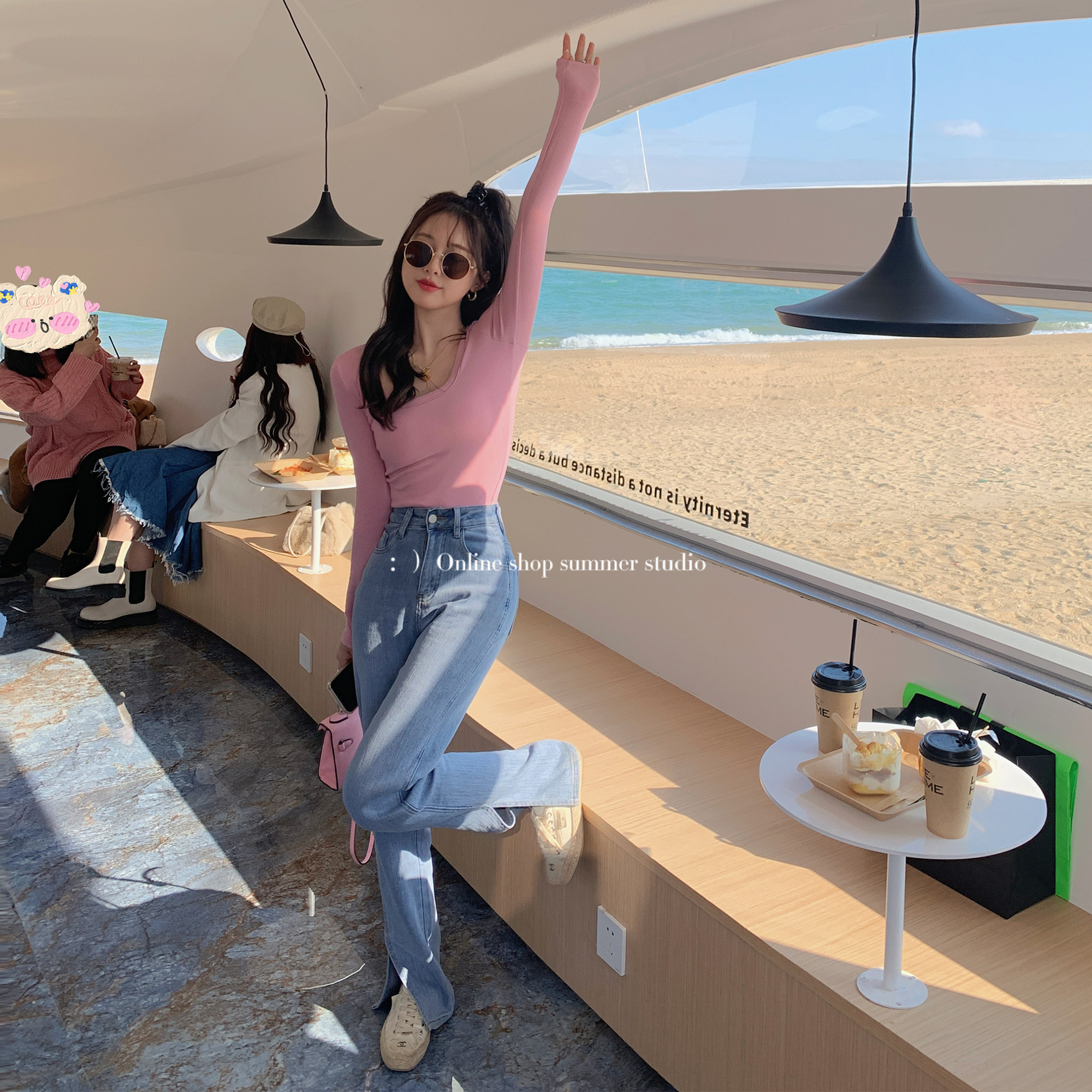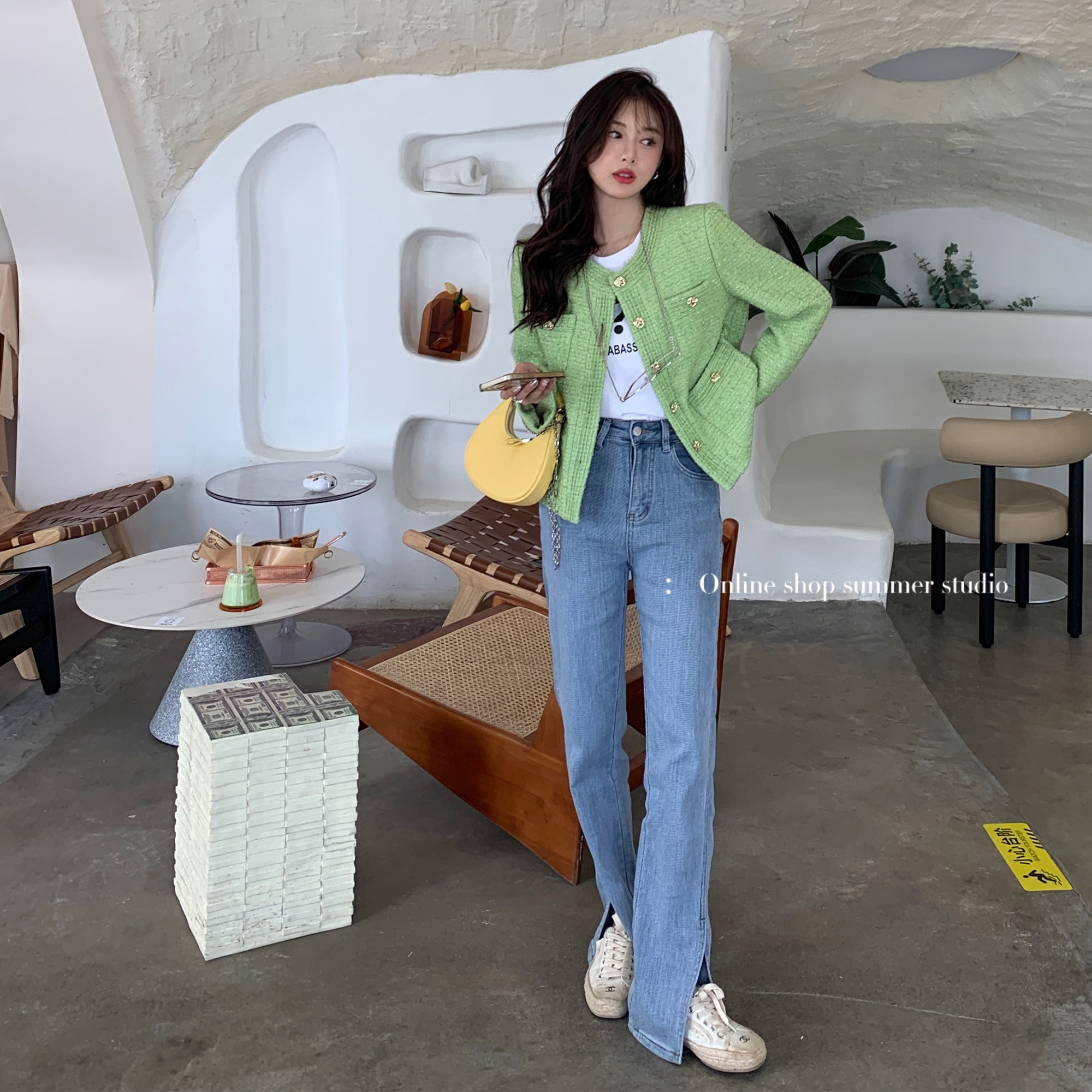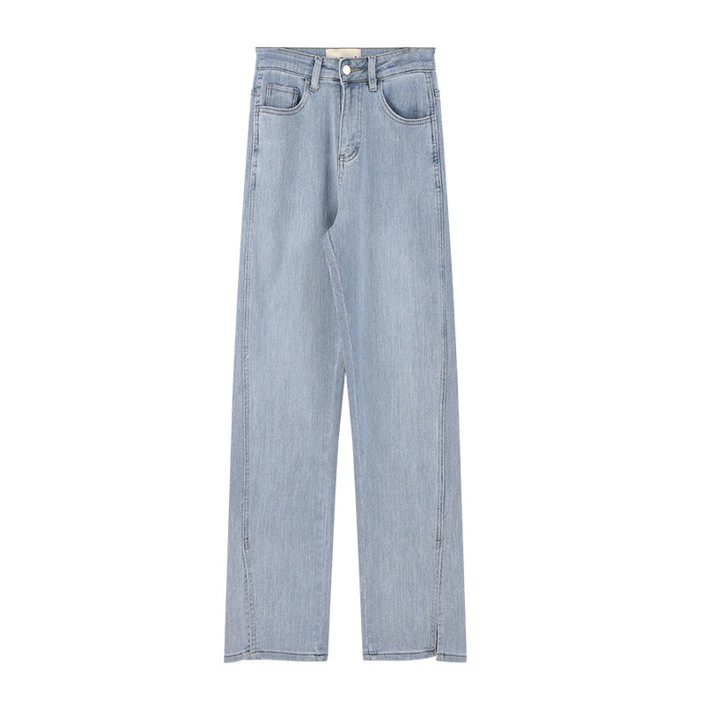 Summer home high waist thin straight wide leg slit jeans women's micro flared pants design sense niche mopping pants