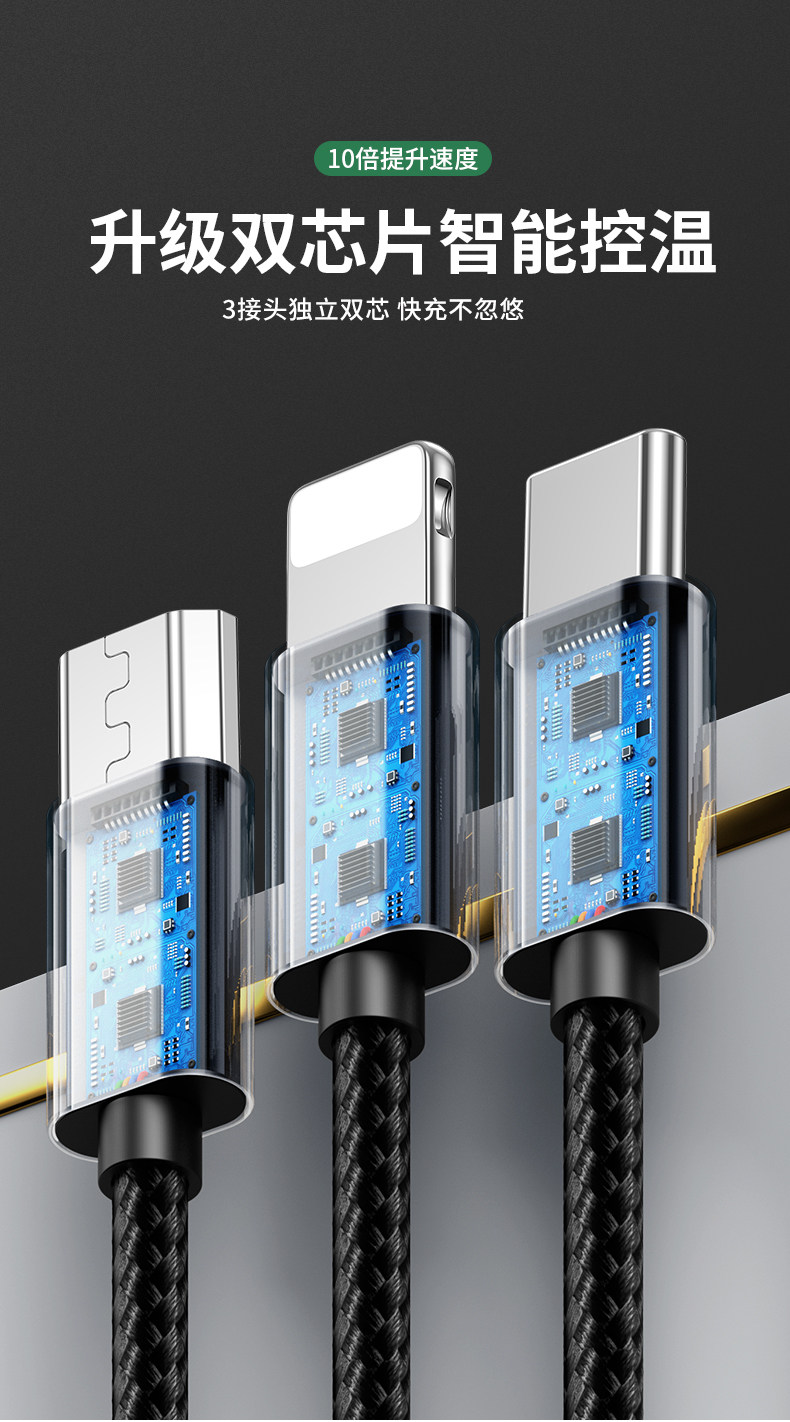 Data line three-in-one 66W Quick charge type-c Charging wire instrumental tlyc one drag three applicable Android Apple Huawei mobile phone on-board universal two-in-one usb triple use